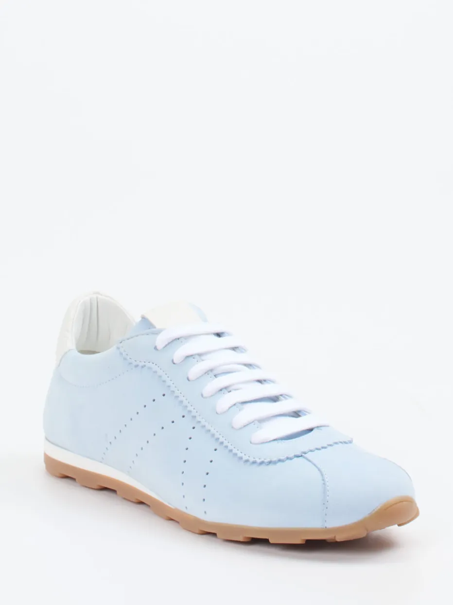 Pastell trifft Retro-Komfort.Andrea Sabatini interpretiert den Sneaker neu – mit femininer Silhouette, Vintage-Flair und hochwertigen Materialien. Für legere Tagesausflüge oder entspannte City-Walks: Das samtig angeschliffene Nubukleder in zartem Pastellblau sorgt für stilvolle Leichtigkeit. Der klassische Retro-Schnitt mit flacher, schmaler Form und strukturierter Gummisohle gewährleistet sicheren Halt. Weiße Akzente an Ferse und Zunge, zickzackförmige Einfassung und Ton-in-Ton-Schnürung runden das Design minimalistisch ab. Das weiche Kalblederfutter und das herausnehmbare Fußbett maximieren den Tragekomfort. Ein subtiler Trend-Boost für entspannte Sommeroutfits – ob zur Chino oder zum Pastell-Shirt. Für stilgetriebenen Alltag mit Retro-Charme in markentypischer Leichtigkeit.