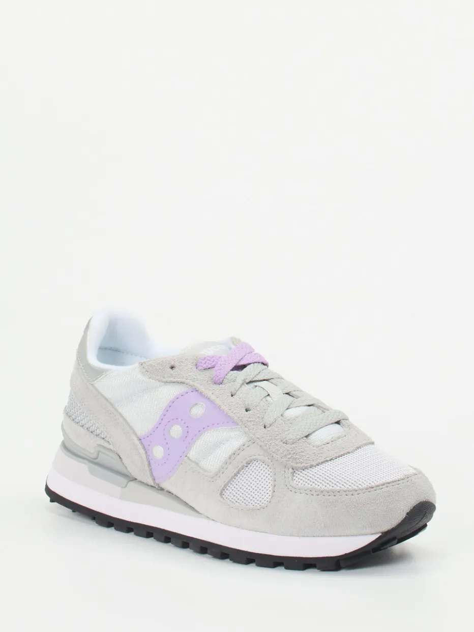 Retro-Vibes mit Pastellakzent.Der Shadow Original von Saucony ist ein stylischer Damen-Sneaker mit Retro-Flair. Ideal für entspannte Tage in der Stadt: Durch die Kombination aus Textil, samtig strukturiertem Veloursleder und atmungsaktivem Mesh bietet das Modell ein angenehmes Fußklima. In Hellgrau gehalten, unterstreichen fliederfarbene Details wie Logo und Schnürsenkel den angesagten Look. Die klassische Runner-Silhouette mit profilierter Gummisohle und reflektierender Fersenkappe sorgt für sicheren Auftritt auf urbanem Terrain. Inspiriert vom Stil der 90er trifft er den aktuellen Retro-Running-Trend. Harmoniert besonders schön mit soften Sportsocken oder einem Windbreaker in Pastell. Trendige Lässigkeit mit sporthistorischem Charakter von Saucony.