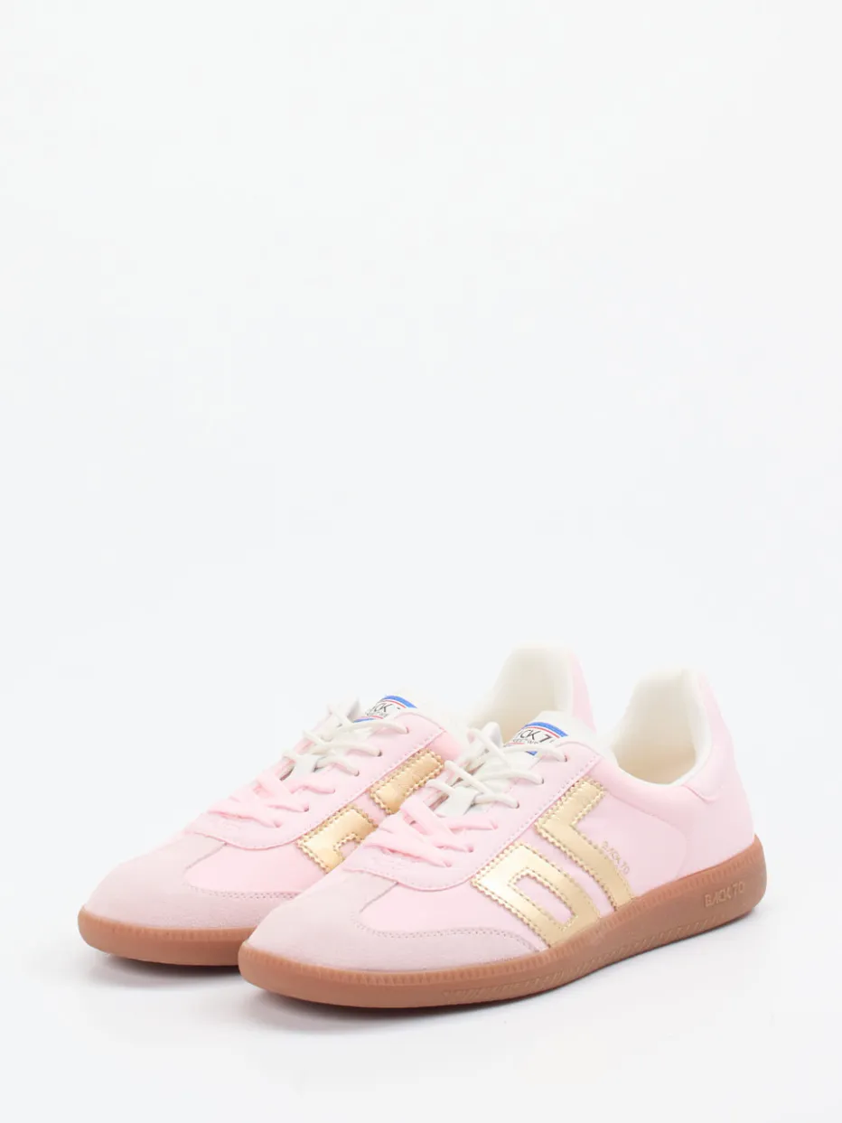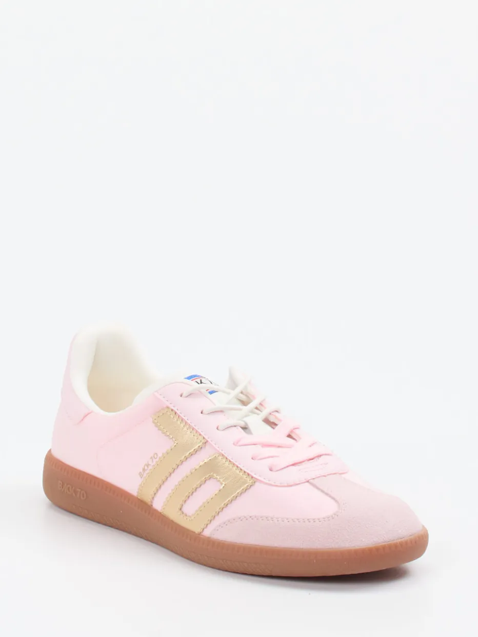 Ob beim Stadtbummel oder entspannten Urlaubsspaziergang – dieser Sneaker aus rosa Velour/Textil ist dank Memory-Foam-Fußbett und gepolstertem Schaft besonders angenehm zu tragen. Samtig angeschliffenes Veloursleder trifft auf leichtes Nylon und ein glänzendes Metallic-Logo an der Ferse. Die flache, rund gearbeitete Silhouette mit Schnürverschluss läuft auf einer honigfarbenen Gummisohle mit stylishem Profil. Goldfarbene Applikationen und ein minimalistischer Look unterstreichen die Streetwear-Affinität.