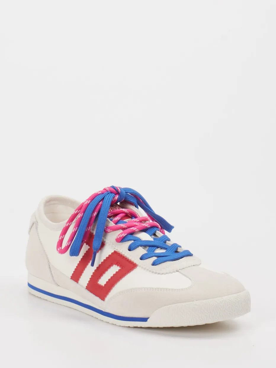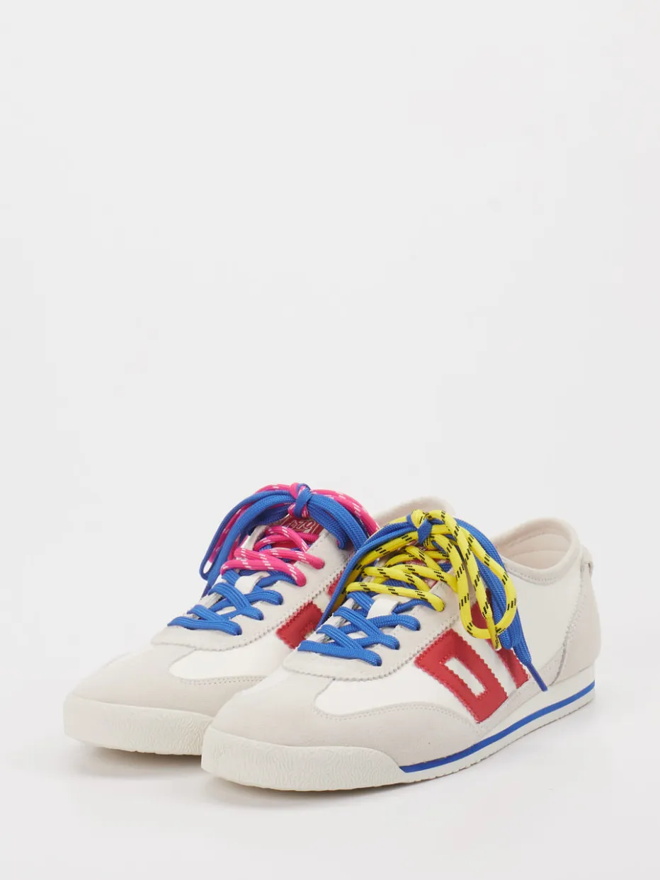 Farbspiel im Retro-Stil. Back 70 bringt mit diesem Retro-Sneaker frischen Wind in klassische Streetwear-Styles. Ideal für expressive Looks bei Freizeit und Alltag: Der Unisex-Sneaker kombiniert Velourleder-Elemente mit canvasartigen Partien in mattem Offwhite. Auffällige Schnürsenkel in Rot und Blau unterstreichen den trendigen Color-Blocking-Look, während das schmal-flache Design und die verstärkte Ferse sportlich wirken. Eine komfortable Gummisohle mit dezentem Wellenprofil sorgt für Trittsicherheit. Besonders praktisch: Wechsel-Schnürsenkel laden zum Individualisieren ein. Teil des Y2K-Revivals – stylisch und markant. Ein Statement-Sneaker mit urbaner Energie und modischer Klarheit.