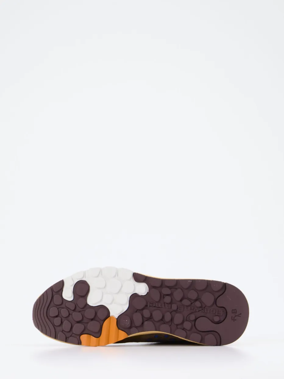 Color-Blocking der Extraklasse.Floris van Bommel präsentiert mit diesem Herren-Sneaker im Retro-Runner-Stil eine ausdrucksstarke Ergänzung für dynamische Streetwear-Looks. Ideal für urbane Alltagsmomente, verbinden sich Veloursleder und Meshtextil mit matter, strukturierter Oberfläche zu einem funktionalen Design. Der gepolsterte Schaftrand, eine mehrteilige Gummisohle und markante Farbakzente in Petrol, Braun, Senfgelb und Violett unterstreichen den Gorpcore-Charakter. Die gesprenkelte Zwischensohle, die kontrastierenden Schnürsenkel und das retro-voluminöse Profil stärken den individuellen Look. Vielseitig kombinierbar mit sportlichen Accessoires und klar ein urbanes Modebekenntnis. Floris van Bommel steht für handwerkliche Qualität mit modischem Mut.