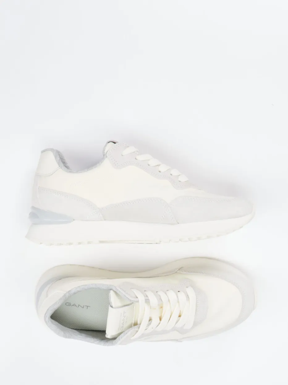 Stil und Komfort im Vintage-Look.Der Damen-Sneaker von Gant vereint klassisches Design mit modernem Fußkomfort. Ob beim Stadtbummel oder entspannten Treffen im Café – dieser Retro Runner trifft den Nerv der ruhigen Ästhetik. Die Kombination aus cremefarbenem Nylon und samtig angeschliffenem Veloursleder verleiht dem Schuh eine unaufdringliche Eleganz. Mit gepolstertem Einstieg, weichem Textilfutter und einer robust profilierten Gummisohle bietet er zuverlässigen Komfort. Tonale Nähte, hellgraue Akzente und eine dezente Markenprägung verleihen dem Modell eine klare Formsprache. Ideal für lässige Stilvarianten mit Jogpants oder Steppjacke. Gant steht für entspannten Chic zwischen Heritage und Alltag.