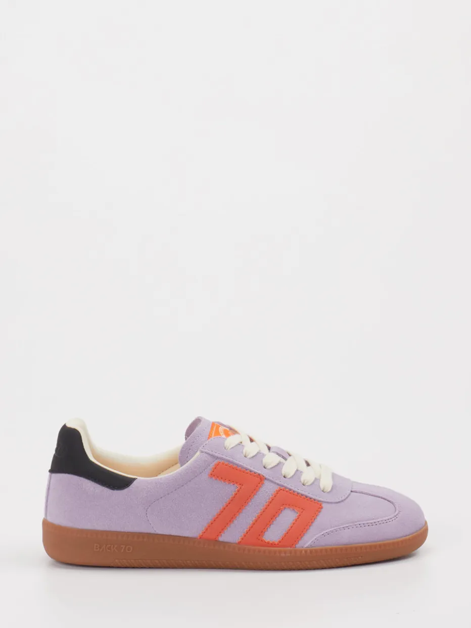 Design mit Charakter. Retro-Sneaker von Back 70 interpretieren bekannte Silhouetten neu. Ideal für urbanes Flair bei Freizeitaktivitäten verbindet dieser Sneaker hochwertiges Veloursleder mit einer robusten Gummisohle und weichem Textilfutter. Der fliederfarbene Look wird durch ein kontrastierendes korallenfarbenes Logo und eine schwarze Fersenkappe akzentuiert. Die abgerundete Form, profilierte Laufsohle und Schnürung unterstreichen die sportliche Funktionalität mit Retro-Charme. Ein echtes Statement für Streetstyle-Looks im Retro-Trend. Stilsicherer Farbkontrast trifft auf komfortable Alltagstauglichkeit.