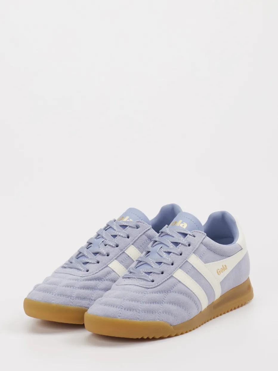 Streetstyle mit Nostalgie-Faktor. Gola präsentiert einen Retro-Sneaker für Damen und Herren, der modische Vergangenheit mit heutiger Lässigkeit verbindet. Ob für den Spaziergang in der Stadt oder den Weg zum Sport: Das Modell kombiniert komfortables Veloursleder mit einer weich genarbten Oberfläche und unterstützt durch seine flache, runde Form einen lässigen Auftritt. Der unifarbene Look in Lavendelblau wird durch cremeweiße Seitenstreifen und eine honigfarbene Gummisohle im Vintage-Look wirkungsvoll ergänzt. Goldgeprägte Logos und ein gepolsterter Schaftrand setzen stylishe Akzente. Ideal für Freizeit-Outfits mit Pastelltönen oder sportiven Basics. Gola vereint Retro-Charakter mit authentischem Streetwear-Stil und hohem Tragekomfort.