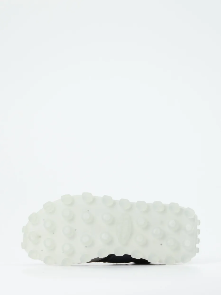 Ideal für entspannte City-Walks oder den Weg ins Café: Hellgraues Veloursleder kombiniert sich mit anthrazitfarbenem und navyblauem Mesh zu nuancenreicher Monochromatik. Weich aufgeraute, glatte und meshartige Partien variieren den Look. Der gepolsterte Schaftrand und ein herausnehmbares Fußbett versprechen Tragekomfort. Die grob profilierte, transluzente Gummisohle verleiht dem Design Outdoor-Attitüde bei urbaner Alltagstauglichkeit. Ein Sneaker im Trendbild des aktuellen Gorpcore-Stils – perfekt zum Layering mit Jogpants oder Nylonjacke.