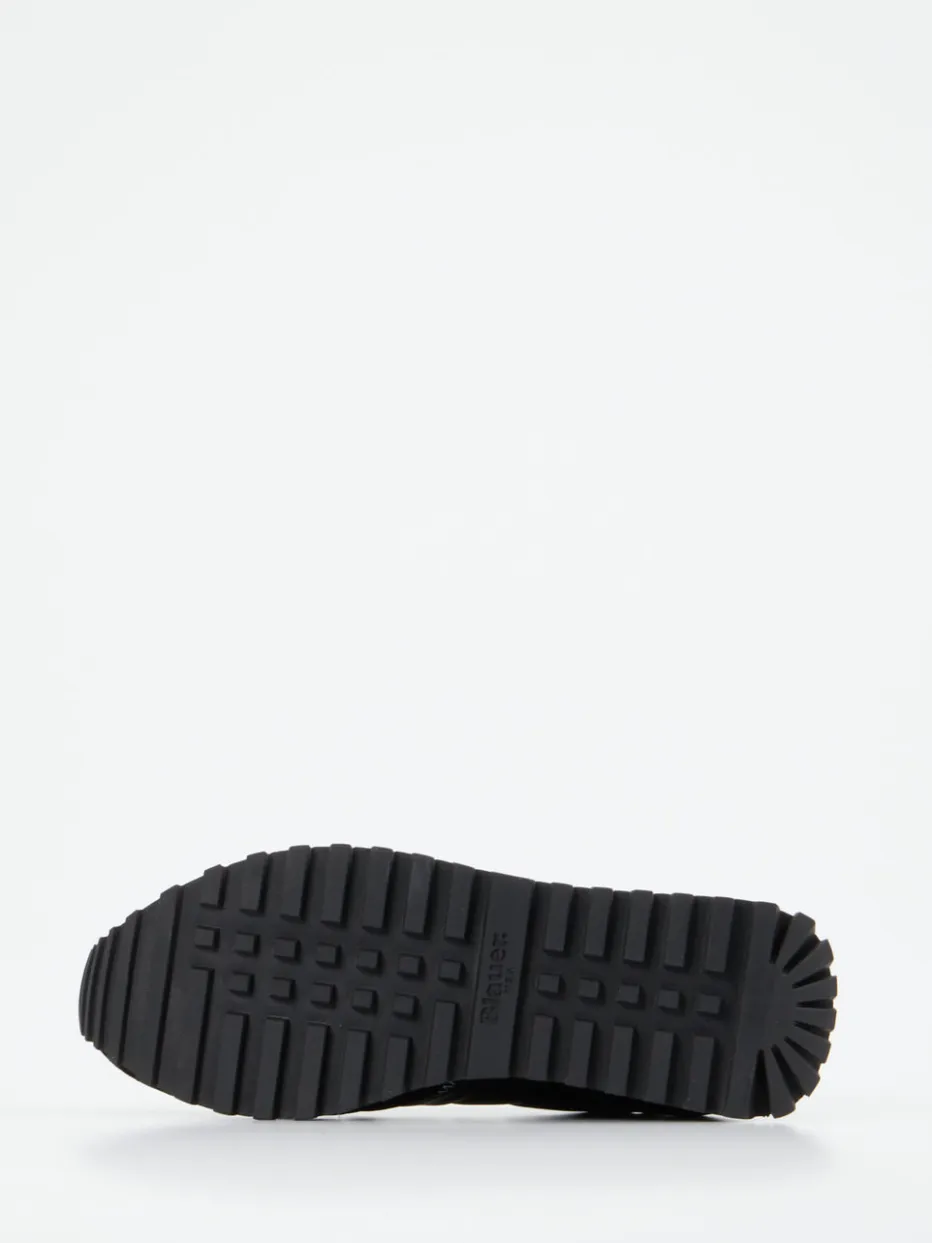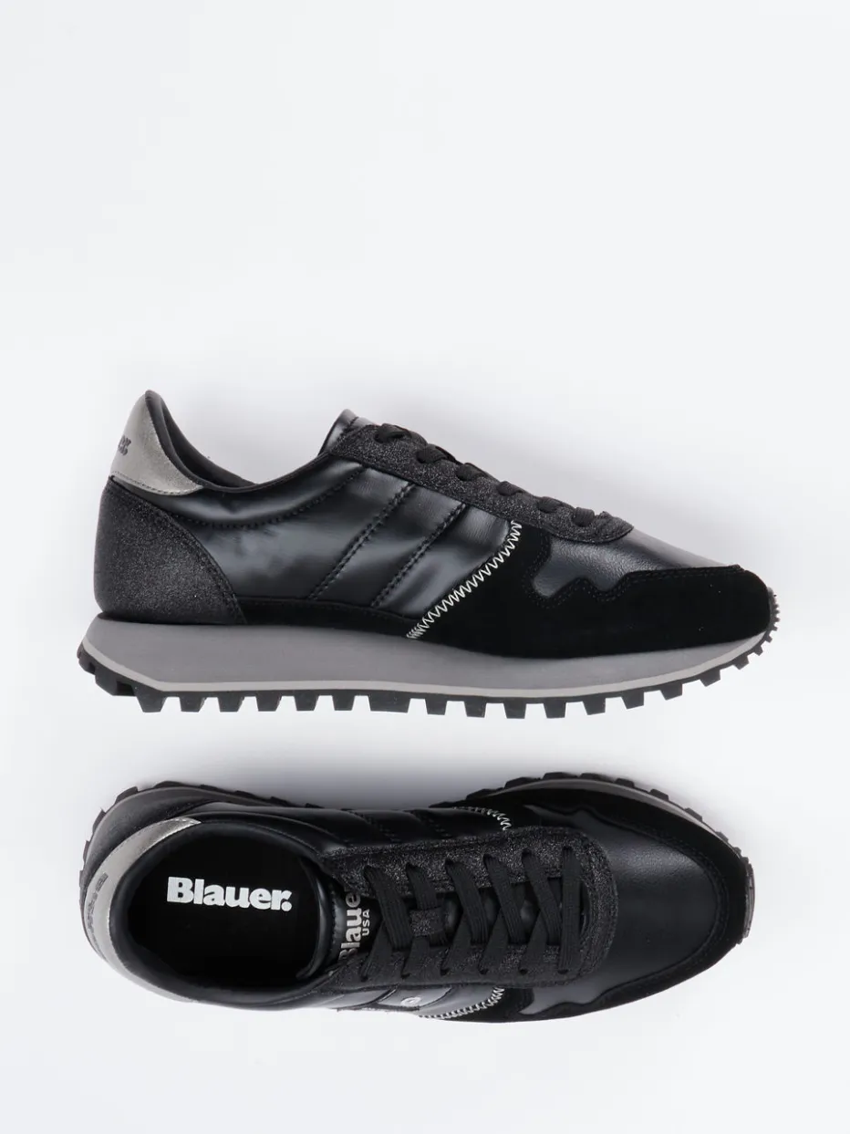Retro trifft urbane Raffinesse. Blauer bietet mit diesem Sneaker einen stilsicheren Allrounder für Damen. Das Modell aus Veloursleder kombiniert materielle Tiefe mit modernen Designideen. Ideal für Tage in der City oder dynamische Freizeitoutfits überzeugt dieser Schuh durch ein sportlich inspiriertes Retro-Design. Der Mix aus samtigem Veloursleder, glattem Leder, Nylon und metallischen Details schafft spannende Kontraste. Farbtöne in Schwarz und Dunkelgrau dominieren die klare Runner-Silhouette, während Zickzack-Ziernähte und ein silberner Fersenpatch akzentuieren. Die profilierte Gummisohle sorgt für Komfort und Traktion. Ein Highlight für trendbewusste Styles mit Streetwear-Note. Markentypisch verbindet Blauer Designattitüde mit funktionalem Alltagskomfort.