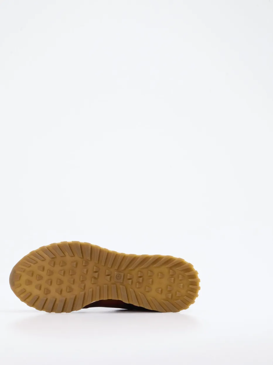 Für urbane Dynamik sorgt das detailreiche Obermaterial aus samtig angeschliffenem Veloursleder, Glattleder und atmungsaktivem Mesh. Der mittelbraune Grundton mit rostbraunen und dunkelblauen Akzenten unterstreicht die herbstliche Farbgebung. Eine zweifarbige, markant profilierte Gummisohle bietet zuverlässigen Halt, während gepolsterter Schaftrand und herausnehmbares Soft-Fußbett den Komfort erhöhen. Der Vintage-90s-Stil passt ebenso gut zu Chinos wie zu Jeans.