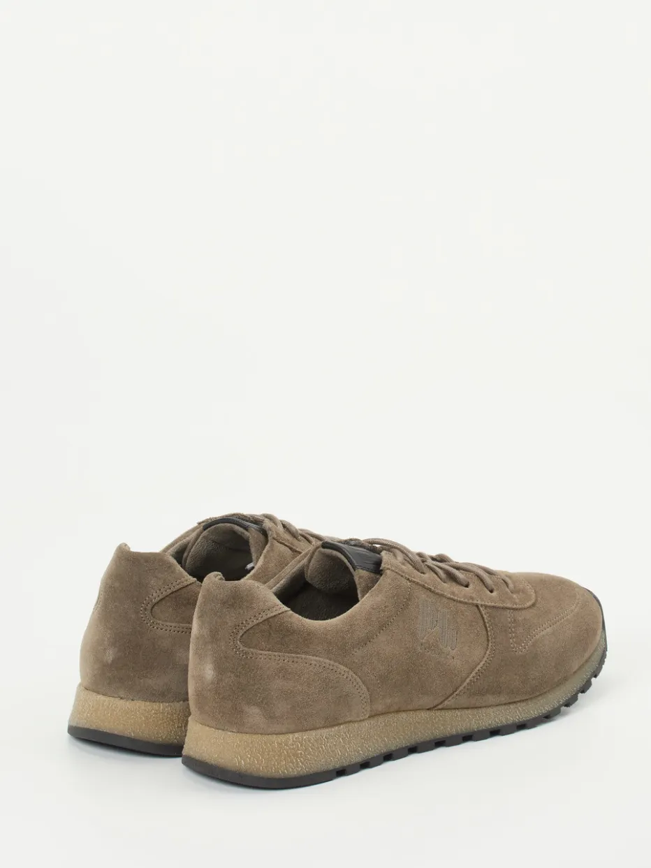 Casual-Ikone im 90s-Style.Pius Gabor interpretiert mit diesem Herren-Sneaker die Retro-Runner-Form neu. Im Alltag überzeugt das Modell durch sein fein verarbeitetes, mattes Veloursleder in mittelbraunem Ton, ergänzt durch tonige Nähte und ein dezentes Logoprint. Die flache Silhouette, kombiniert mit der tief profilierten Gummilaufsohle in Beige und Schwarz, bietet Halt und Komfort. Textilelemente im Futter sorgen für ein angenehmes Tragegefühl. Streetwear-Anleihen und Retro-Look machen ihn zum idealen Begleiter für entspannte Ton-in-Ton-Outfits. Pius Gabor steht für Stilbewusstsein und souveränen Komfort in klassischer Designsprache.