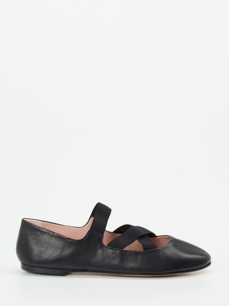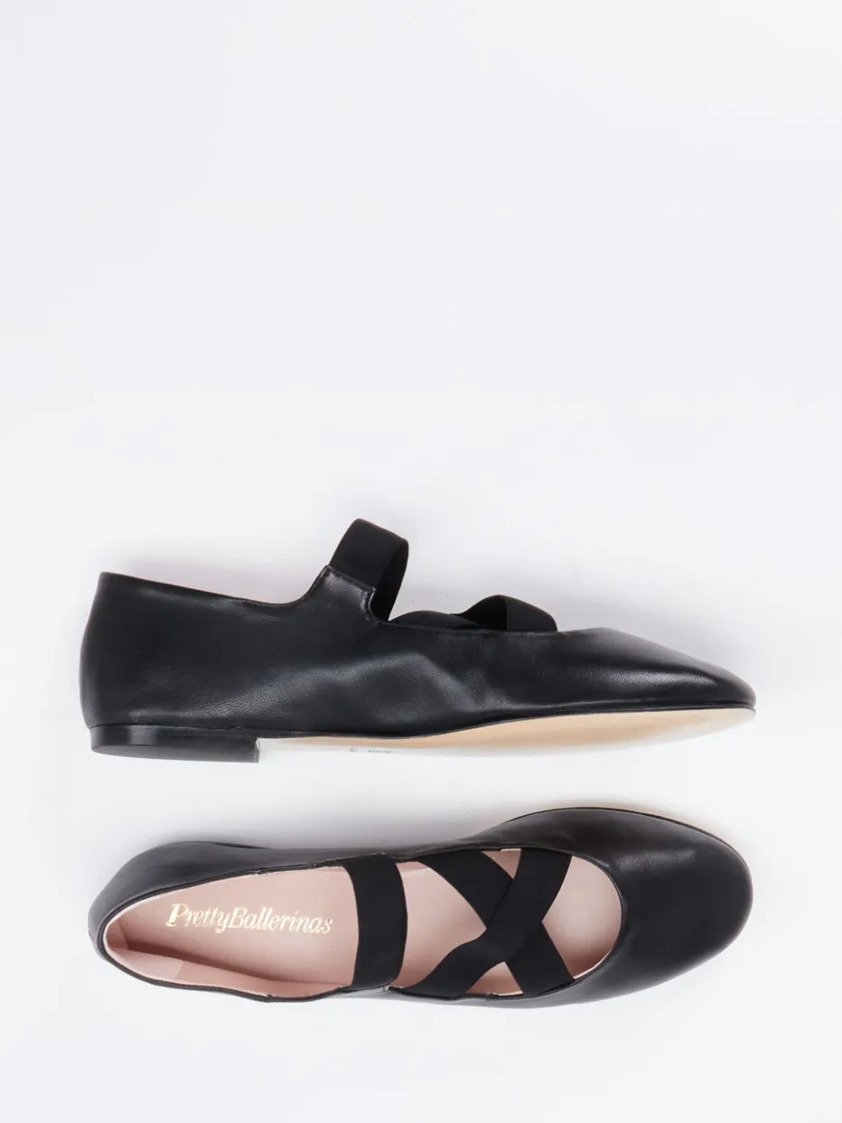Minimalistischer Ballettstil trifft Alltagstauglichkeit.Pretty Ballerinas präsentiert klassische Riemchen-Ballerinas für Damen. Das flach geschnittene Modell vereint weiches, mattes Lammleder mit elastischen Kreuzriemen in Tonalität. Der schwarze Farbton wirkt elegant und unaufdringlich, während das roséfarbene Innenfutter aus Lammnappa für dezenten Kontrast sorgt. Die flexibel gearbeitete Ledersohle mit leichtem Glanz betont die schnörkellose Silhouette. Inspiriert von der Ballettmode und angesiedelt im Trend „Balletcore“, eignen sich diese Flats für Büro, Stadtbummel und stilbewusste Auftritte. Besonders harmonisch in Kombination mit Midirock und Strick. Hochwertige Lederverarbeitung mit zarter Ästhetik von Pretty Ballerinas.