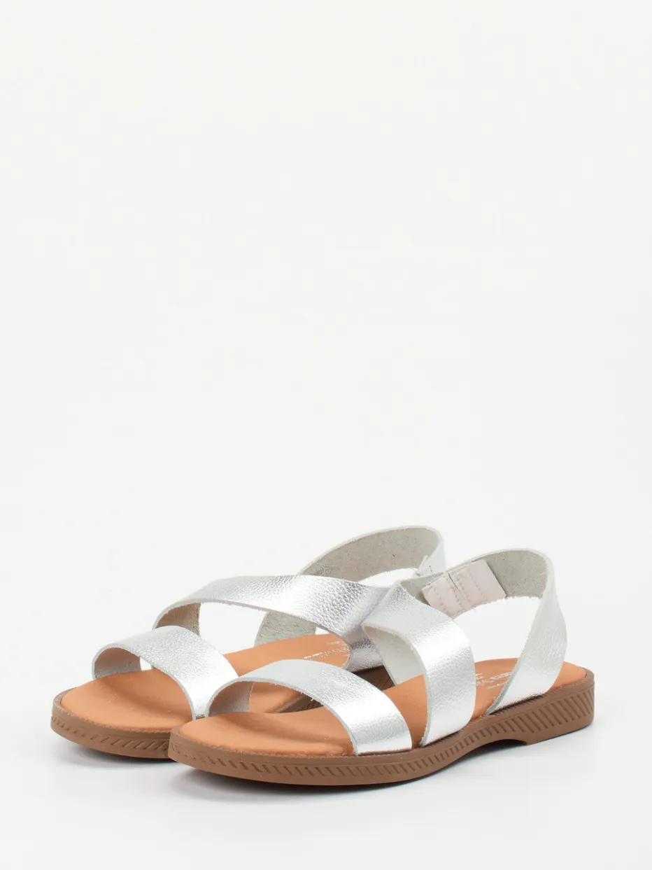 Ideal für warme Tage, punktet dieses Modell durch feines, silberfarbenes Metallicleder mit genarbter Oberfläche. Die offene, flach gehaltene Form mit elastischem Fersenriemen erleichtert den Einstieg, während eine profilierte Gummisohle rutschhemmenden Komfort im Alltag bietet. Sichtbare Nähte und ein schimmerndes Finish greifen den Trend „Metallic Accents SS24“ auf und ergänzen minimalistische Sommer-Looks perfekt. Harmoniert besonders mit luftigen Leinenkleidern oder naturfarbenen Accessoires.