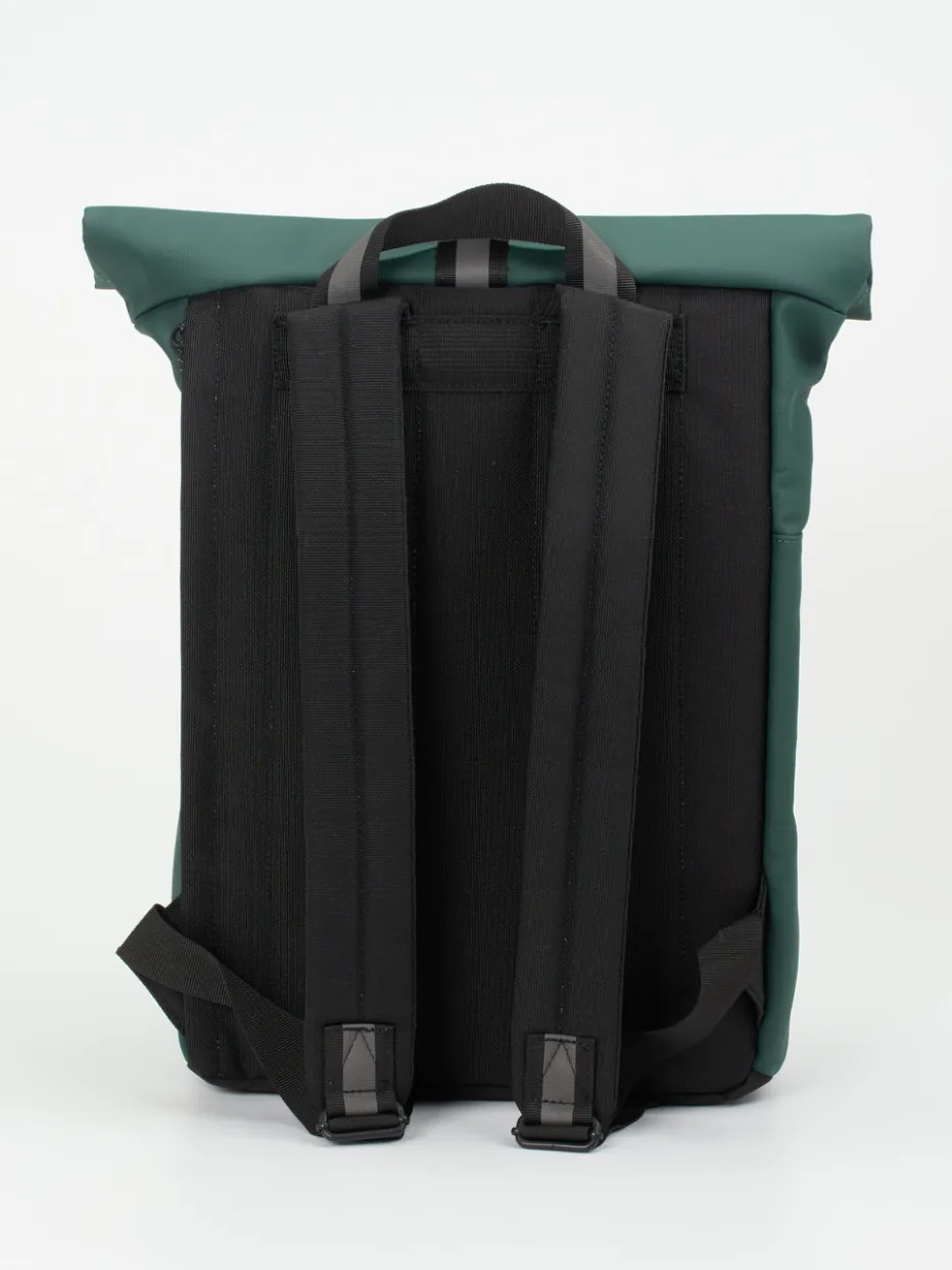 Nachhaltig, vegan und absolut stylish! Das Berliner Label Ucon Acrobatics präsentiert diesen Rucksack in der Form Hajo Mini. Das vegane Tech-Obermaterial hat eine weiche Haptik und überzeugt mit seiner attraktiven Farbgebung in Grün. Alle Stoffe sind wasserdicht. Der Roll-Top schließt mit Klettverschluss und ermöglicht ein praktisches Befüllen des Hajo Backpacks. Über einen vertikalen Reißverschluss ist der Zugriff auf das Hauptfach ganz leicht. Zwei außenliegende Eingriffstaschen bieten Platz für Regenschirm oder Trinkflasche. Ein klimabewusster Allrounder für Ihren Alltag und jede Gelegenheit! – Obermaterial: 36% Polyurethane (PU), 40% Polyester (PET), Kalziumcarbonat 14%, 10% Holzfasern – Futter: 100% recyceltes Polyester – Farbe: Grün – Größe: ca. 40 x 35 x 10 cm (H x B x T) – Rückengurt: ca. 70 cm, verstellbar – Henkel: ca. 20cm – Verschluss: Druckknöpfe, Klettverschluss – Innen: Innenfach passend für ein 16,4″ Laptop, zwei Steckfächer – Außen: Tasche auf der…