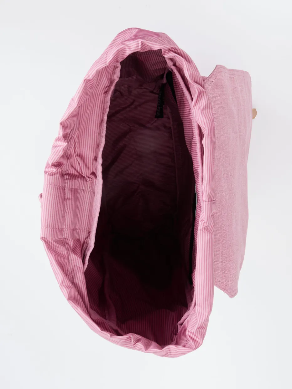 Dieser nachhaltige Rucksack der Marke Herschel besteht zu 100% aus recycelten Bestandteilen. Der attraktive Farbton in Rosa verleiht jedem Outfit eine frische Note. Besonders praktisch ist die gepolsterte Laptoptasche im Innenraum, in der bequem ein Laptop der Größe 15‘‘/16‘‘ transportiert werden kann. Verschlossen wird der Rucksack mit einem Gummizug an der Innentasche und zusätzlichen Druckknöpfen an der Außenseite. Die Größe kann zusätzlich durch die beiden Riemen mit den zugehörigen Schnallen individuell angepasst werden. Die hellbraunen Riemen setzen zudem einen tollen Farbkontrast. Außerdem bietet der Rucksack weiteren Stauraum durch zwei Seitenfächer links und rechts, in die beispielsweise eine Trinkflasche oder ein kompakter Regenschirm untergebracht werden können. Dazu kommt noch ein Steckfach auf der Vorderseite und ein verstecktes Reißverschlussfach auf der Rückseite. Dieser Rucksack ist ein robuster und zuverlässiger Alltagsbegleiter! – Material: 100% PET – Farbe: Rosa…