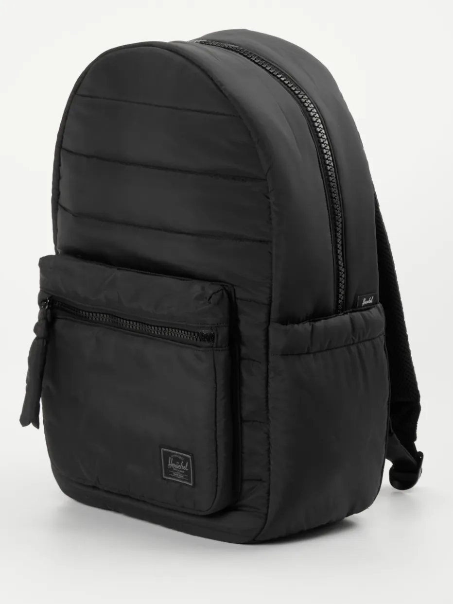 Die Rucksäcke der Marke Herschel stehen für Nachhaltigkeit und einzigartiges Design. Dieses Modell präsentiert sich in einem trendigen Steppmuster und ist aus recycelten Stoffen gefertigt. Die tonigen Reißverschlüsse setzen ausdrucksstarke Akzente. Der Innenbereich garantiert viel Platz für all Ihre Alltagsgegenstände. Die Vordertasche bietet sich zur Aufbewahrung der nötigsten Utensilien an. Die gepolsterten EVA-Schulterriemen garantieren einen bequemen Tragekomfort. Cleanes, urbanes Design, das überzeugt! – Material: 100% PET – Farbe: schwarz – Größe: ca. 45 x 40 x 15 cm (H x B x T) – Schulterriemen: Länge ca. 70 cm, verstellbar – Verschluss: Reißverschluss – Innen: zwei Steckfächer – Außen: ein Reißverschlussfach, zwei Steckfächer