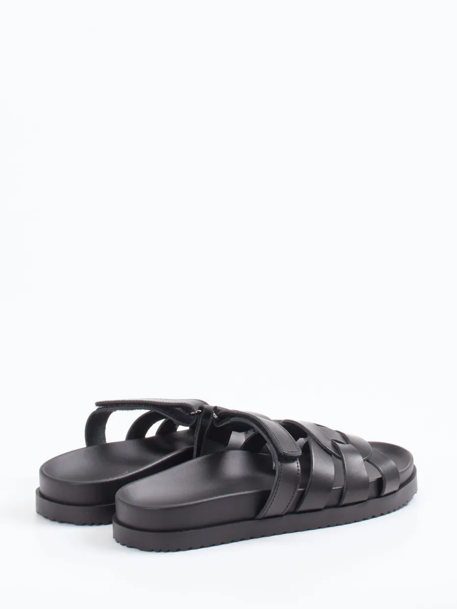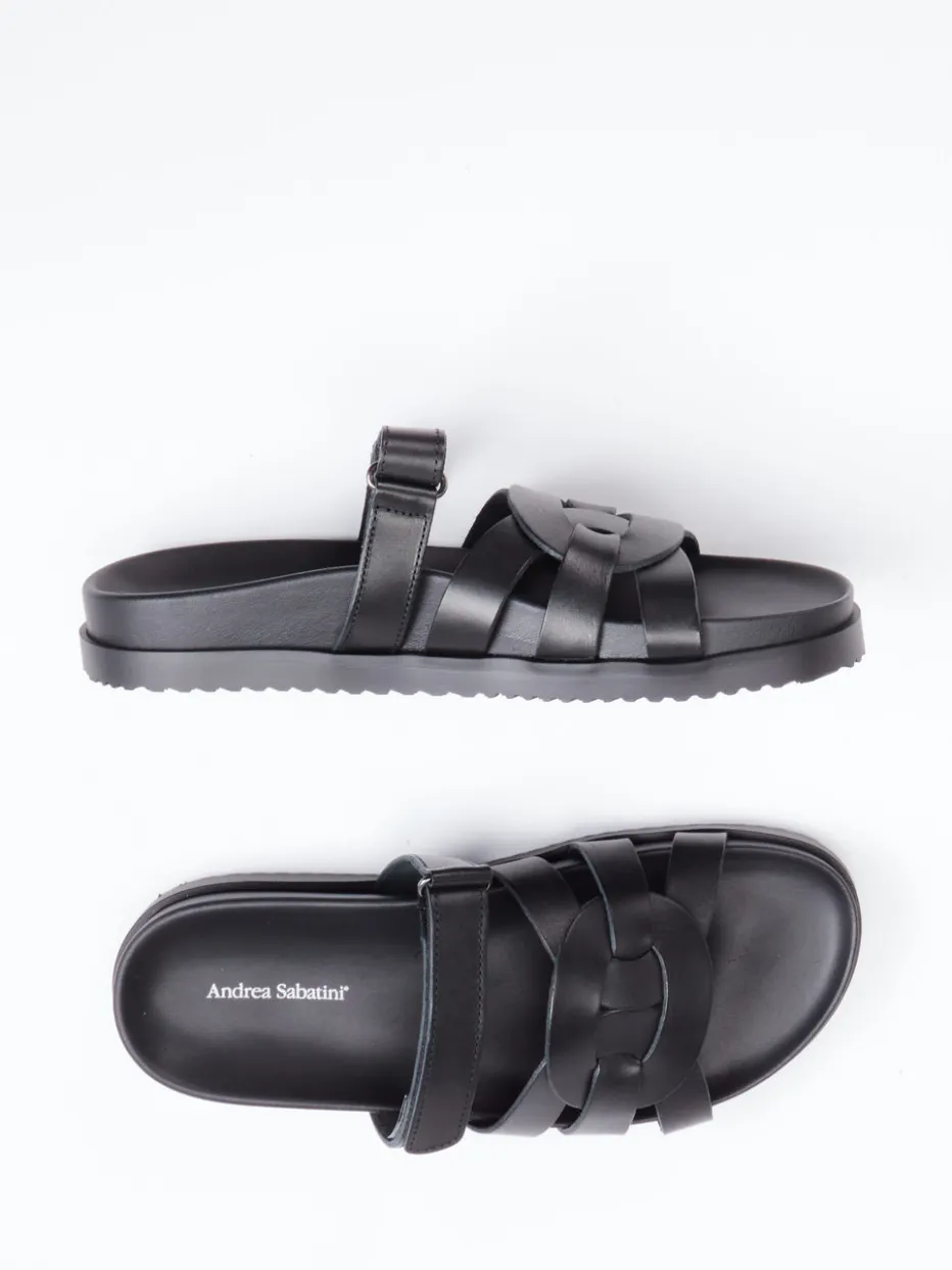 Reduziertes Design, maximaler Komfort.Andrea Sabatini präsentiert eine hochwertige Damen-Sandale mit Fokus auf Komfort und ästhetischer Klarheit. Ideal für Stadtbummel, Reisen oder sommerliche Alltagslooks überzeugt das Modell durch weiches Kalbleder mit matt strukturierter Oberfläche und geflochtener Riemen-Partie. Die tiefschwarze Farbgebung kombiniert sich mit klarer, offener Form, ergonomisch geformtem Fußbett sowie einem verstellbaren Klettverschluss. Die strukturierte Gummisohle bietet Rutschfestigkeit, das puristische Design mit Ton-in-Ton-Nähten unterstreicht den zeitlosen Minimalismus. Ein Must-have im Zeichen von „Quiet Luxury“ und „Comfort First“. Langlebige Qualität trifft auf zurückhaltenden Stil – typisch Andrea Sabatini.