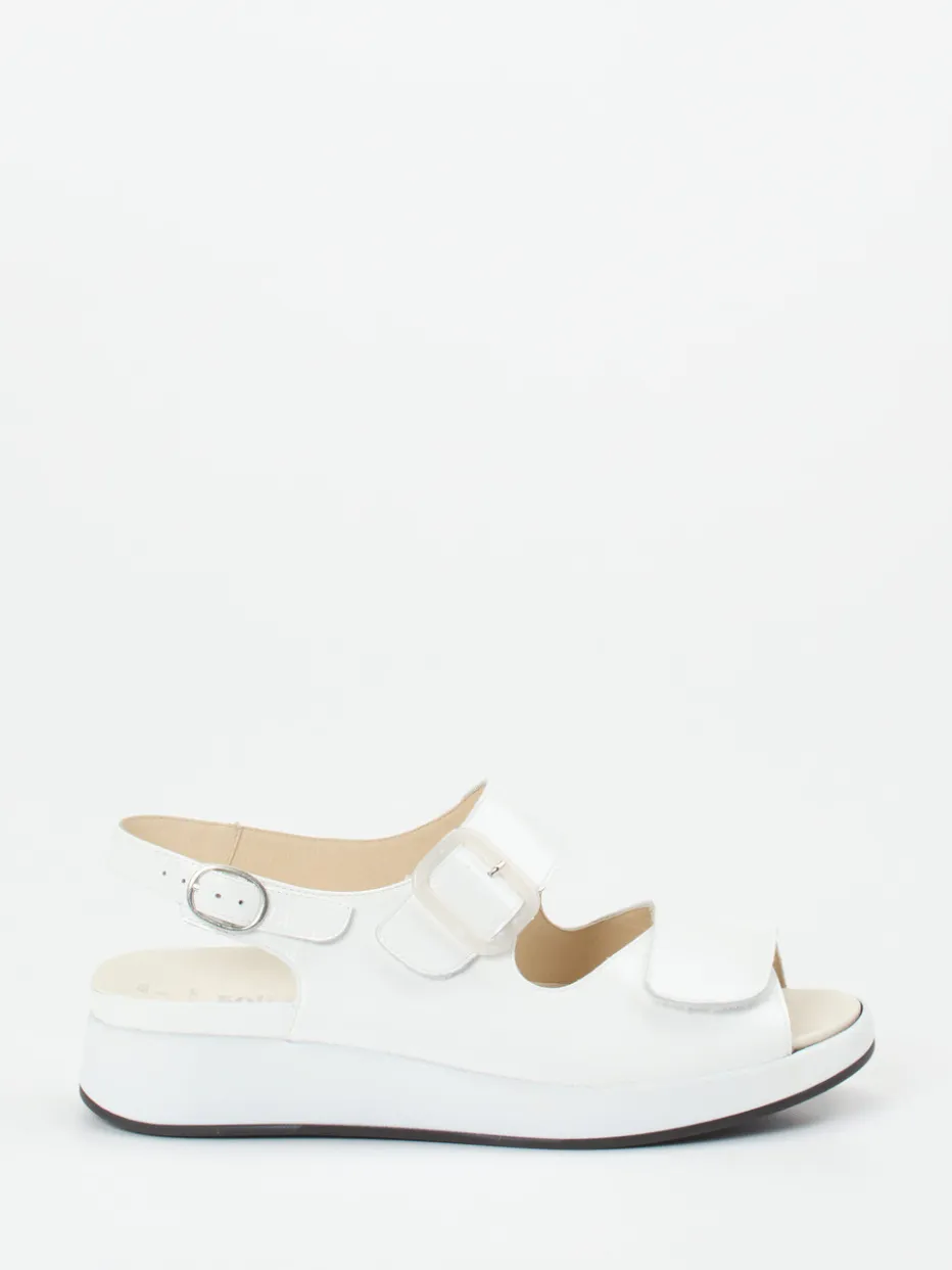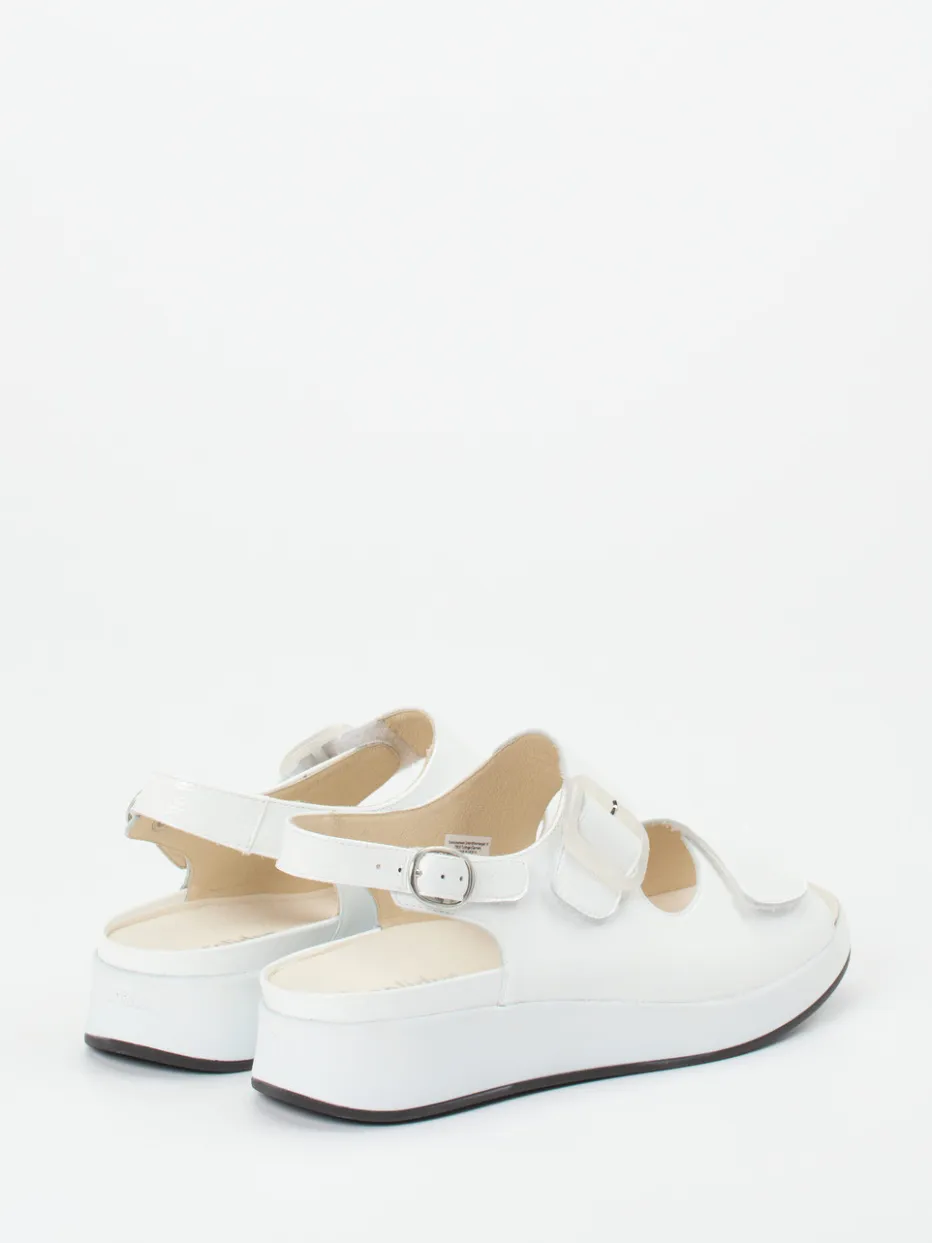 Sommerkomfort trifft stillen Luxus.Solidus präsentiert eine Damen-Komfortsandale für die warmen Tage. Für entspannte Alltagswege oder Urlaubsbummel: Das weiße, glänzende Nappa-Lackleder hat eine weiche Anfassqualität und bringt Minimalismus in sommerlicher Interpretation auf den Punkt. Zwei Klettverschlüsse ermöglichen individuelle Passform, während der silberfarbene Fersenriemen funktionalen Halt gibt. Die ergonomisch geformte PU-Sohle mit Luftpolster-Fußbett sorgt für spürbaren Komfort – auch bei herausfordernden Fußformen. Die offene Plateauform folgt dem „Quiet Luxury“-Trend mit saisonalem Charme. Perfekt für stilbewusste Trägerinnen, die Komfort schätzen – made for every step by Solidus.