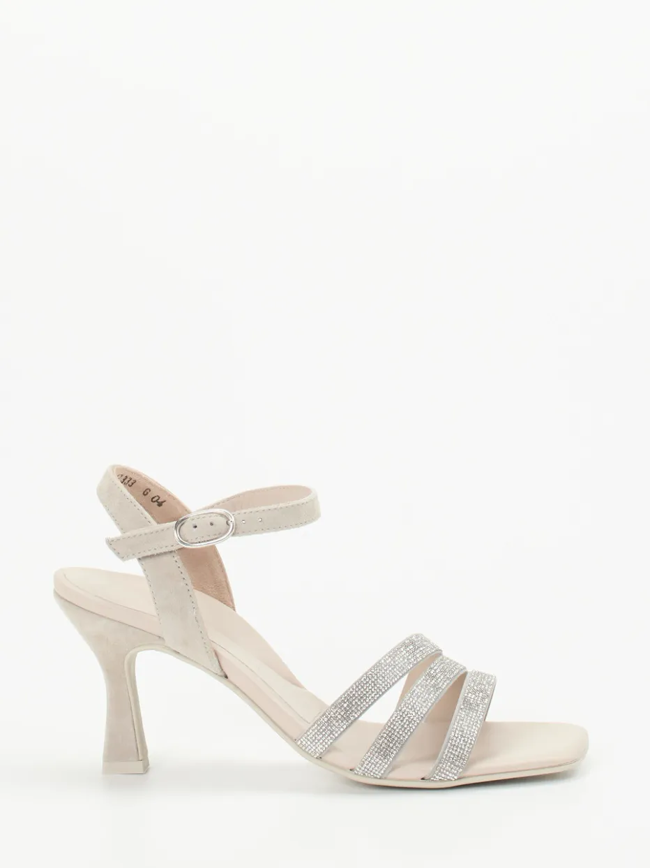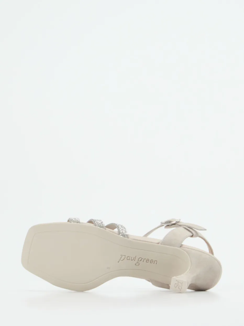 Diese elegante Riemchensandale von Paul Green vereint samtig-mattes Veloursleder in Creme mit funkelnden Strassdetails – ideal für moderne Events mit dezentem Glamour.