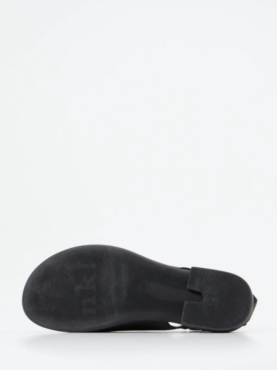 Understatement in Leder.Think präsentiert mit dieser Sandale ein Modell für Alltag und Entspannung. Die schwarze Damen-Sandalette überzeugt durch weiches, mattes Lammleder und eine geschlossene Form mit femininen Aussparungen. Der Peep-Toe-Ausschnitt sorgt für sommerliche Leichtigkeit, während der verstellbare Klettverschluss mit Fersenriemen passgenauen Halt garantiert. Ton-in-Ton-Nähte und eine dezente Logo-Prägung unterstreichen den minimalistischen Look. Der flache Blockabsatz sowie die profilierte Gummisohle bieten Stabilität im urbanen Umfeld. Kombinierbar mit luftigen Stoffhosen oder monochromen Looks. Think vereint nachhaltiges Design mit maximalem Alltagskomfort.