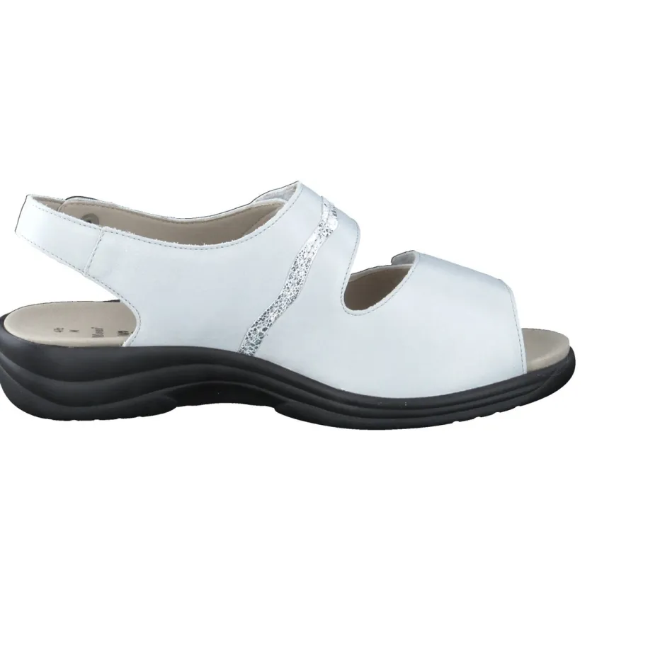 Für entspannte Sommertage mit Stil.Solidus präsentiert mit dieser Damen-Komfortsandale ein Modell, das Eleganz und Bequemlichkeit vereint. Ideal für Freizeit und Alltag bietet das Modell aus hochwertigem Kalbleder in silbergrauem Metallic-Finish nicht nur eine matte, edle Optik, sondern auch spürbaren Komfort. Die offen gearbeitete, ergonomische Passform und verstellbare Klettverschlüsse – ergänzt durch einen funktionalen Fersenriemen mit silberner Schließe – sorgen für individuelle Anpassung. Eine schwarze PU-Sohle in Keilform dämpft angenehm, das herausnehmbare Luftpolster-Fußbett unterstützt bei längerer Beanspruchung. Glitzernde Wellenbesätze unterstreichen die moderne Linie und greifen aktuelle Metallic-Trends auf. Lässt sich vielseitig zu leichten Sommerhosen kombinieren. Solidus steht für anspruchsvolles Komfortdesign mit durchdachter Funktionalität.