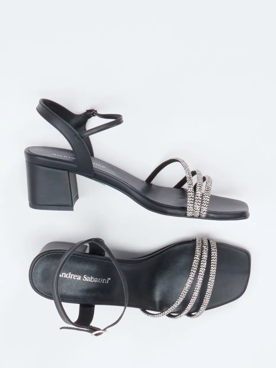 Mit funkelnden Strassriemen und modernem Square-Toe-Design vereint diese Sandalette eleganten Look mit stabilem Komfort.