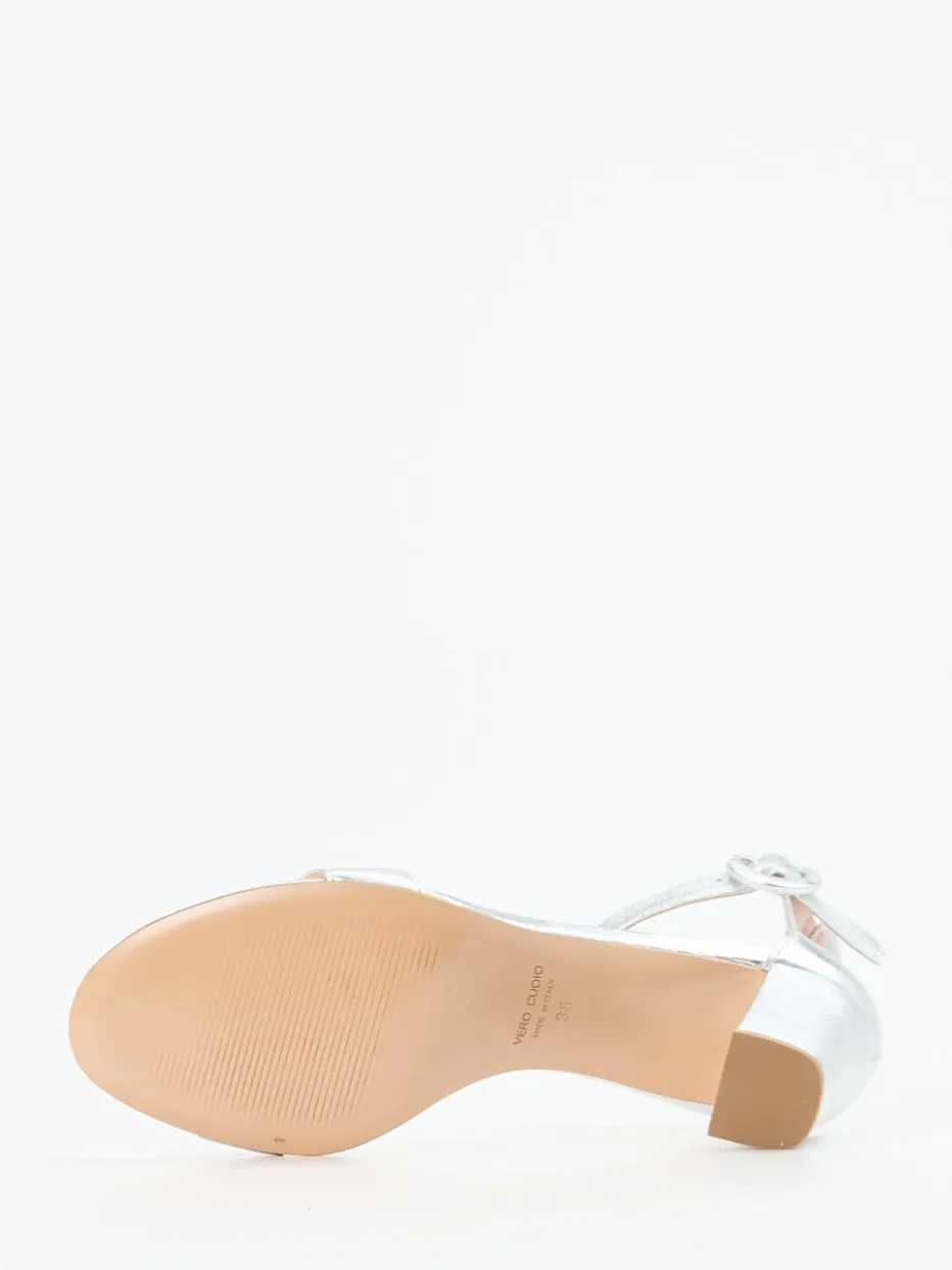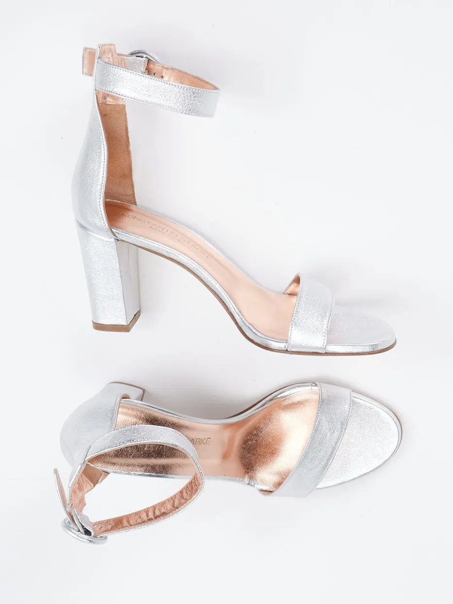 Egal ob Cocktailabend oder Sommerempfang – das silberfarbene Metallicleder mit glänzendem Finish verleiht diesem Modell einen ausdrucksstarken Charakter. Die offene Form mit blockigem, bezogenem Absatz bietet Stabilität und Eleganz zugleich, während die große Rundschnalle am Knöchelriemen für ein markantes Detail sorgt. Innen sorgt feines Kalblederfutter für angenehmen Tragekomfort. Inspiriert vom Retro Glam-Look, greift die Sandalette den Metallic-Trend der Saison gekonnt auf. Passt ideal zu fließenden Stoffen oder Metallic-Accessoires.