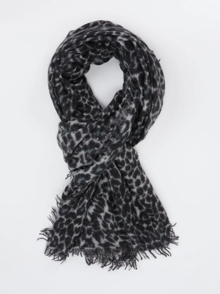 Der weich-flanellige Schal überzeugt mit voluminösem Fall, angesagtem Leoprint und edlen Glitzerdetails – ein markantes Accessoire für trendbewusste Looks.