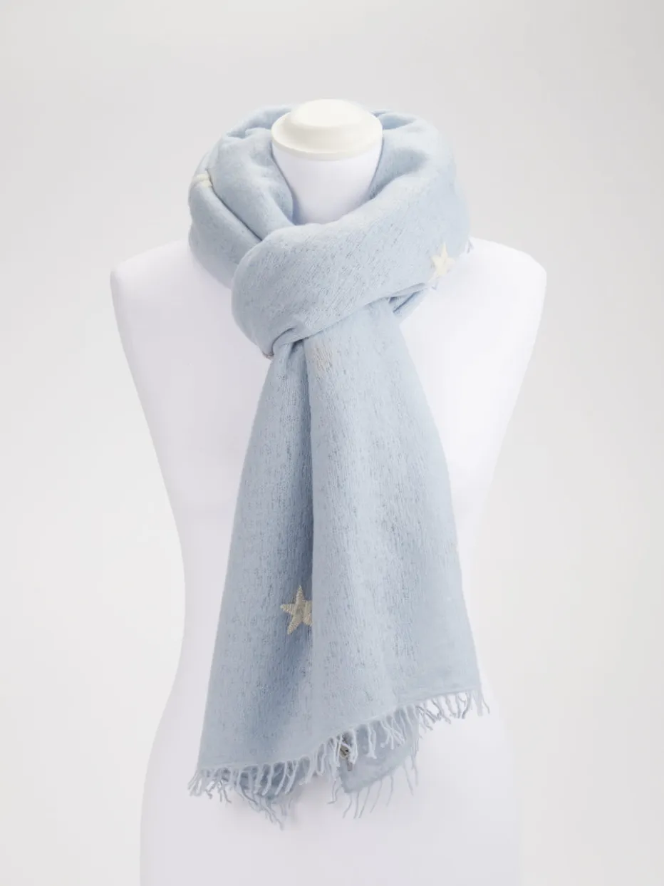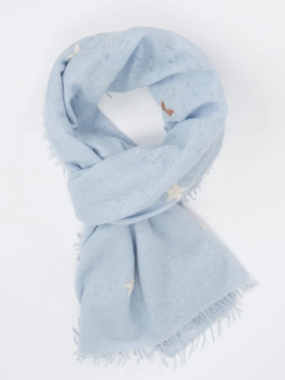 Weicher Schal aus Wolle-Mix mit gesticktem Sternmotiv – ideal für entspannte Layering-Looks in der Übergangszeit.
