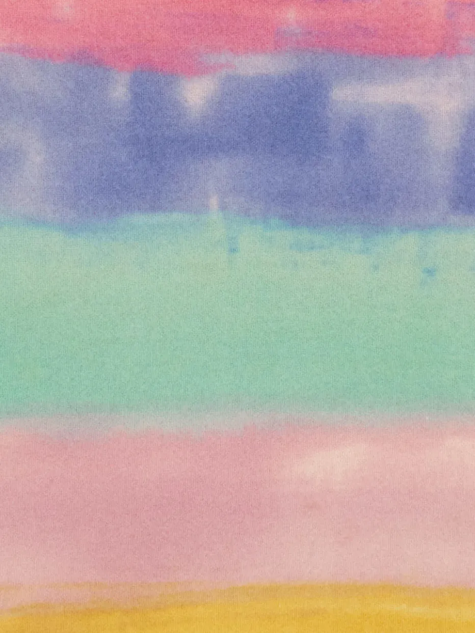 Der Schal von Blui kombiniert sanfte Pastelltöne mit luxuriösem Woll-Kaschmir-Gewebe und interpretiert den Boho-Look modern und mühelos.
