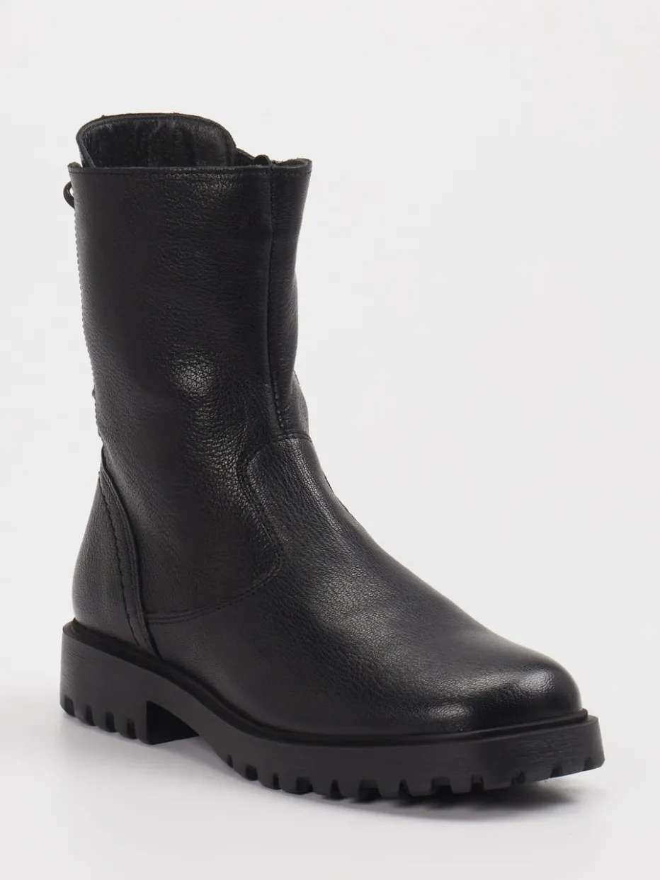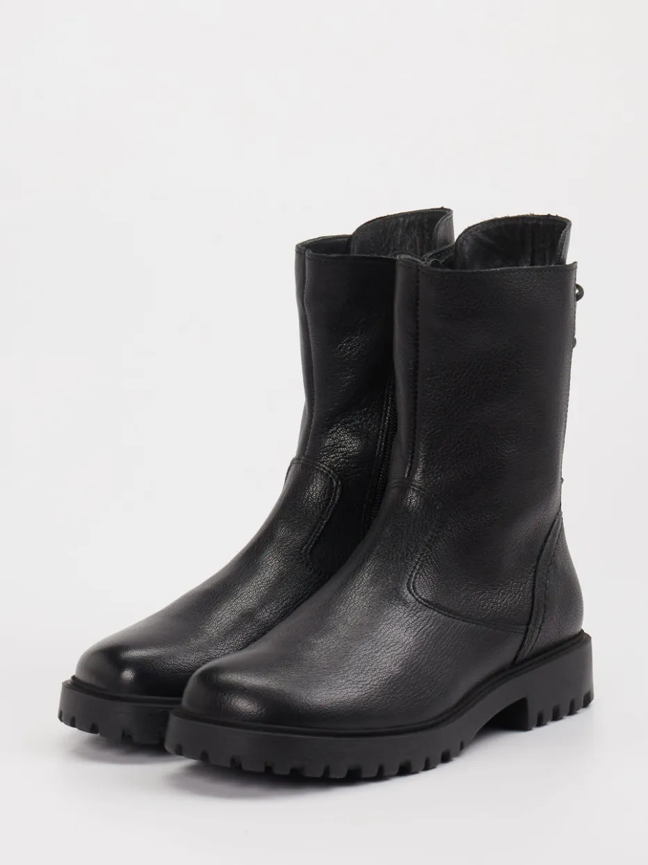 Robust trifft auf Eleganz. Die Marke Think präsentiert eine komfortorientierte Stiefelette für Damen. Gefertigt aus schwarzem Ziegenleder mit leicht genarbter, matter Oberfläche zeigt sich dieses Modell in klassisch-schmaler Silhouette. Die Ton-in-Ton-Nähte und die dekorative Rückenschnürung unterstreichen den reduzierten Look, während ein seitlicher Reißverschluss den Einstieg erleichtert. Die profilierte Gummisohle sorgt für sicheren Halt bei Outdoor-Aktivitäten oder im urbanen Alltag. Im Inneren wärmt eine Textilfütterung aus Bio-Baumwolle. Ideal für stilbewusste Looks im Zeichen von Quiet Luxury. Komfort und Charakter – markentypisches Design mit funktionaler Ästhetik.