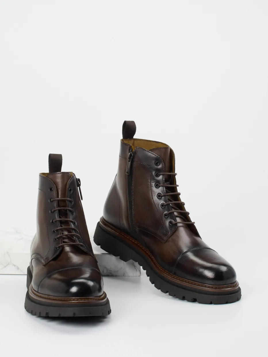 Markanter Begleiter für Stadt und Büro.Konstantin Starke präsentiert alltagstaugliche Herren-Schnürboots mit stilvoller Ausstrahlung. Ob auf dem Weg ins Büro oder beim Stadtbummel – das kaffeebraune Büffelleder mit elegantem Farbverlauf sorgt für einen souveränen Auftritt. Die Kombination aus klassisch-robuster Silhouette, Siebenlochschnürung und seitlichem Reißverschluss erleichtert das Anziehen und garantiert optimalen Sitz. Markant wird der Look durch die glänzende Oberfläche und Ton-in-Ton-Nähte, während die profilierte Gummisohle zusätzliche Trittsicherheit bietet. Der dezente Heritage-Touch passt ideal zum minimalistisch inspirierten Designanspruch der Saison. Komfort und Handwerk in überzeugender Markenqualität.