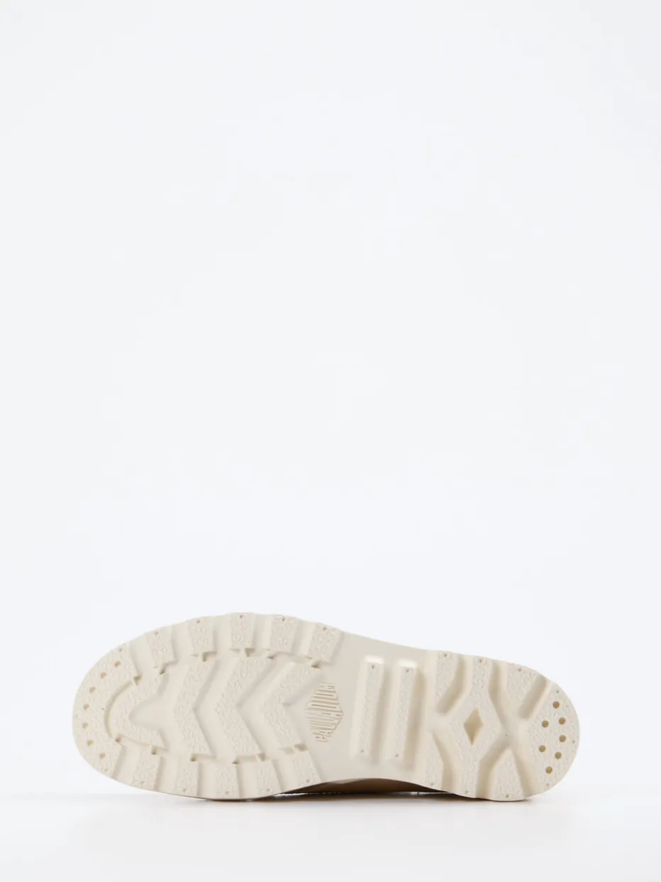 Utility-Style für urbane Entdecker.Die Marke Palladium präsentiert Schnürboots für Damen und Herren aus strapazierfähigem Canvas. Ideal für ausgedehnte City-Walks oder spontane Ausflüge ins Grüne: Die knöchelhohen Boots verbinden mattes Canvas-Textil mit einer robusten Gummisohle samt griffigem Profil. Farblich dominiert ein helles Beige, pointiert durch kontrastierende Details in Koralle und Schwarz – darunter auffällige Logos und eine markante Zuglasche. Die klassische Schnürung sorgt für individuellen Halt, während Textilfutter angenehmen Tragekomfort bietet. Inspiriert vom Gorpcore-Trend, passt das Modell sowohl zu Streetstyle-Outfits als auch funktionalen Looks. Ein souveräner Begleiter mit urbanem Charakter und markentypischem Styleprofil.