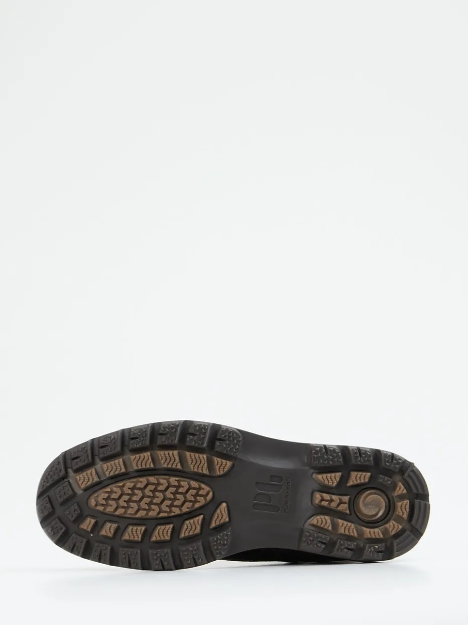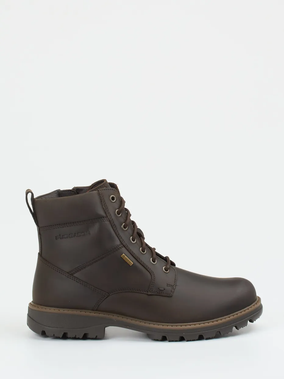 Stilvolle Stärke bei Wind und Wetter.Die Herren-Schnürboots von Pius Gabor sind funktionale Outdoor-Stiefeletten mit minimalistischem Workwear-Charakter. An kühlen Tagen bieten sie zuverlässigen Schutz dank dunkelbraunem, wasserabweisendem Fettleder mit matter Oberfläche. Die klassische Silhouette trifft auf eine fein verarbeitete Schnürung mit Metallösen in Antikoptik sowie einen praktischen Reißverschluss an der Innenseite. Die kräftig profilierte Gummisohle sorgt für sicheren Grip auf wechselhaftem Untergrund, während das wärmende Wollfutter und das gepolsterte Wechselfußbett für Tragekomfort in Herbst und Winter stehen. Akzente wie die seitliche Logo-Prägung und Ton-in-Ton-Nähte unterstreichen das markante Design. Ein verlässlicher Alltagsbegleiter mit funktionaler Ästhetik und langlebigem Stilprofil von Pius Gabor.