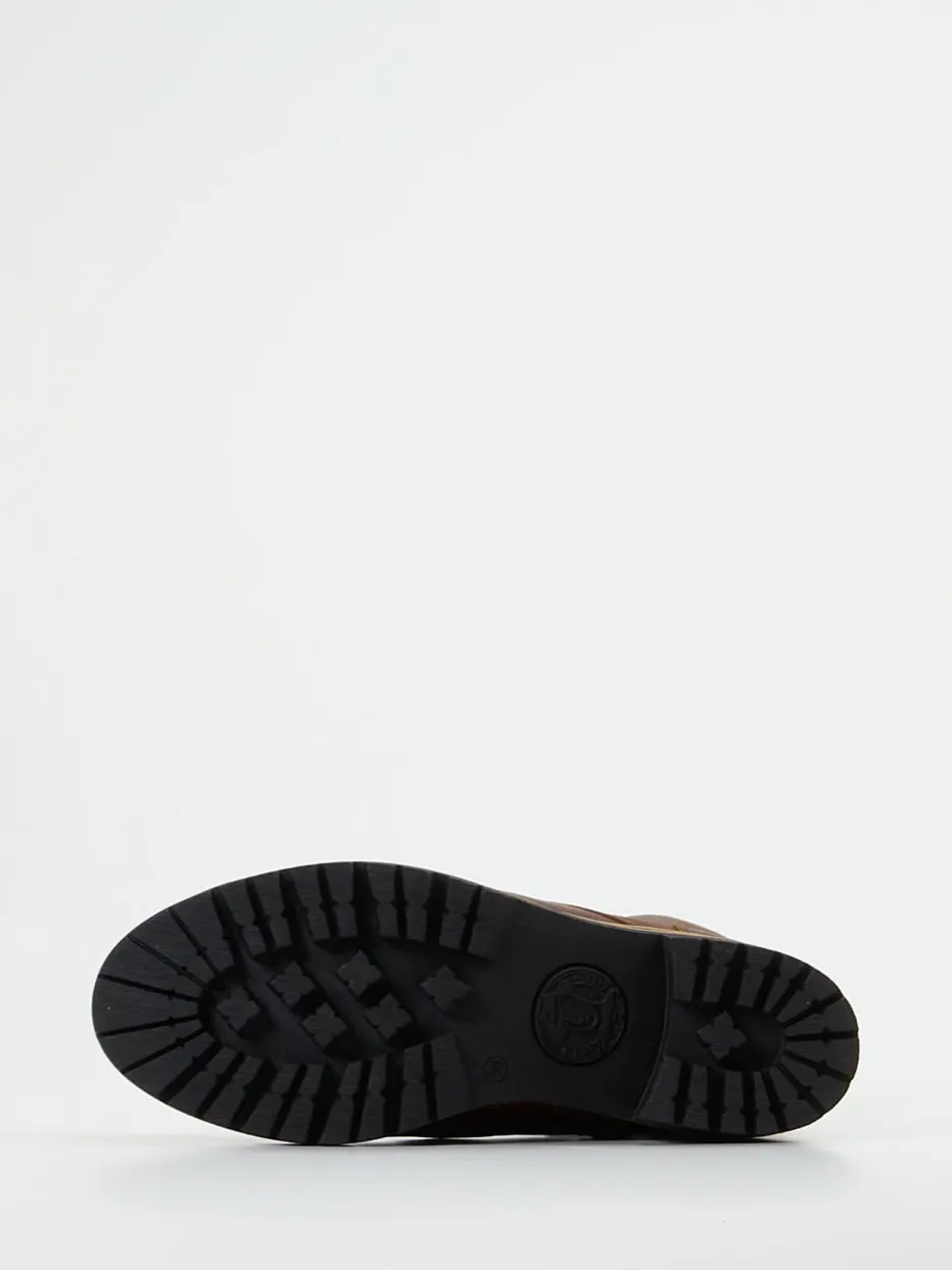 Wärme trifft Workwear-Charme.Panama Jack bietet mit dieser Damen-Stiefelette aus der Workwear-inspirierten Linie einen verlässlichen Begleiter für den Winter. Ob auf Waldwegen oder Pflastersteinen – das gefettete, matt strukturierte Leder in Mittelbraun, die tonige Schnürung mit kupferfarbenen Ösen und der seitliche Reißverschluss bieten praktische Funktion und ein stimmiges Design. Ein warmes Textilfutter sorgt für Komfort an kalten Tagen, während die griffige Gummisohle mit Blockabsatz stabile Bodenhaftung garantiert. Dank ihrer knöchelhohen Silhouette und rustikalen Details fügt sich der Look ideal in Outdoor- wie City-Outfits ein. Ein charakterstarker Winterboot mit funktionalen Details und stilsicherer Zumnorde-Note.