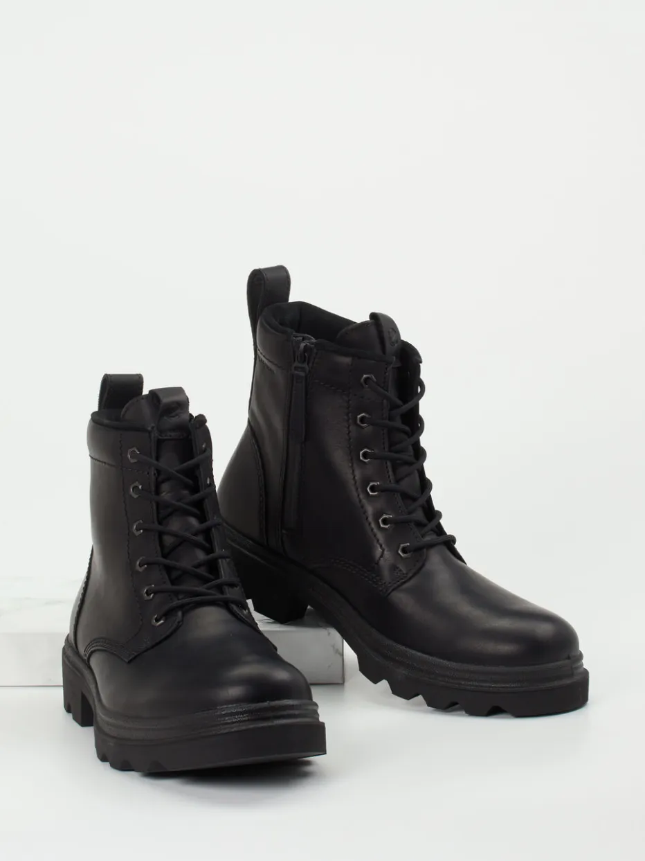 Stil trifft Funktionalität.Die Marke Ecco präsentiert mit diesen knöchelhohen Schnürboots eine unisex-taugliche Variante für Alltag und Freizeit. Für kühle Tage und wechselhaftes Wetter bieten das robuste Fettleder mit matter Oberfläche sowie ein warmes Textilfutter zuverlässigen Schutz. Die schwarze Ton-in-Ton-Gestaltung mit dezenter Logo-Prägung wirkt minimalistisch und stilbewusst. Dank seitlichem Reißverschluss und klassischer Schnürung vereinen sich Komfort und Struktur. Die markant profilierte Gummisohle unterstützt beim Gehen auf verschiedenen Untergründen und passt zum Utility-Trend der Saison. Kombiniert mit einem Outdoor-Parka ergibt sich ein funktionaler Herbstlook. Ecco steht hier für durchdachtes Design mit hohem Tragekomfort bei urbaner Robustheit.