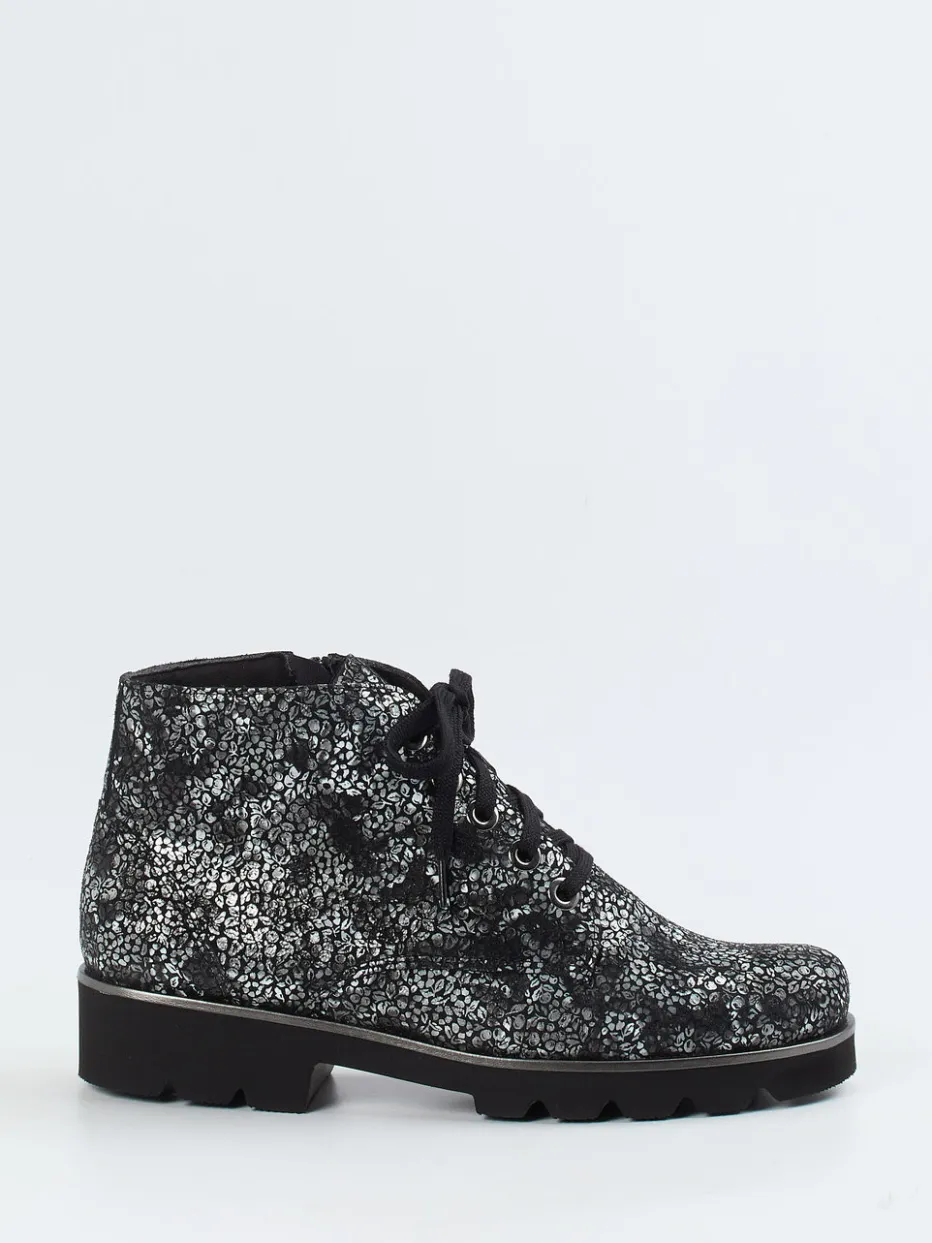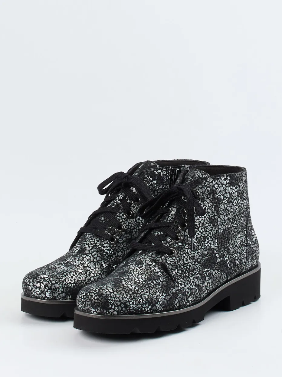 Das geprägte Leder mit floralem Metallic-Muster verleiht diesen Schnürboots von Christian Dietz eine markante Note – komfortorientiert und modisch zugleich.