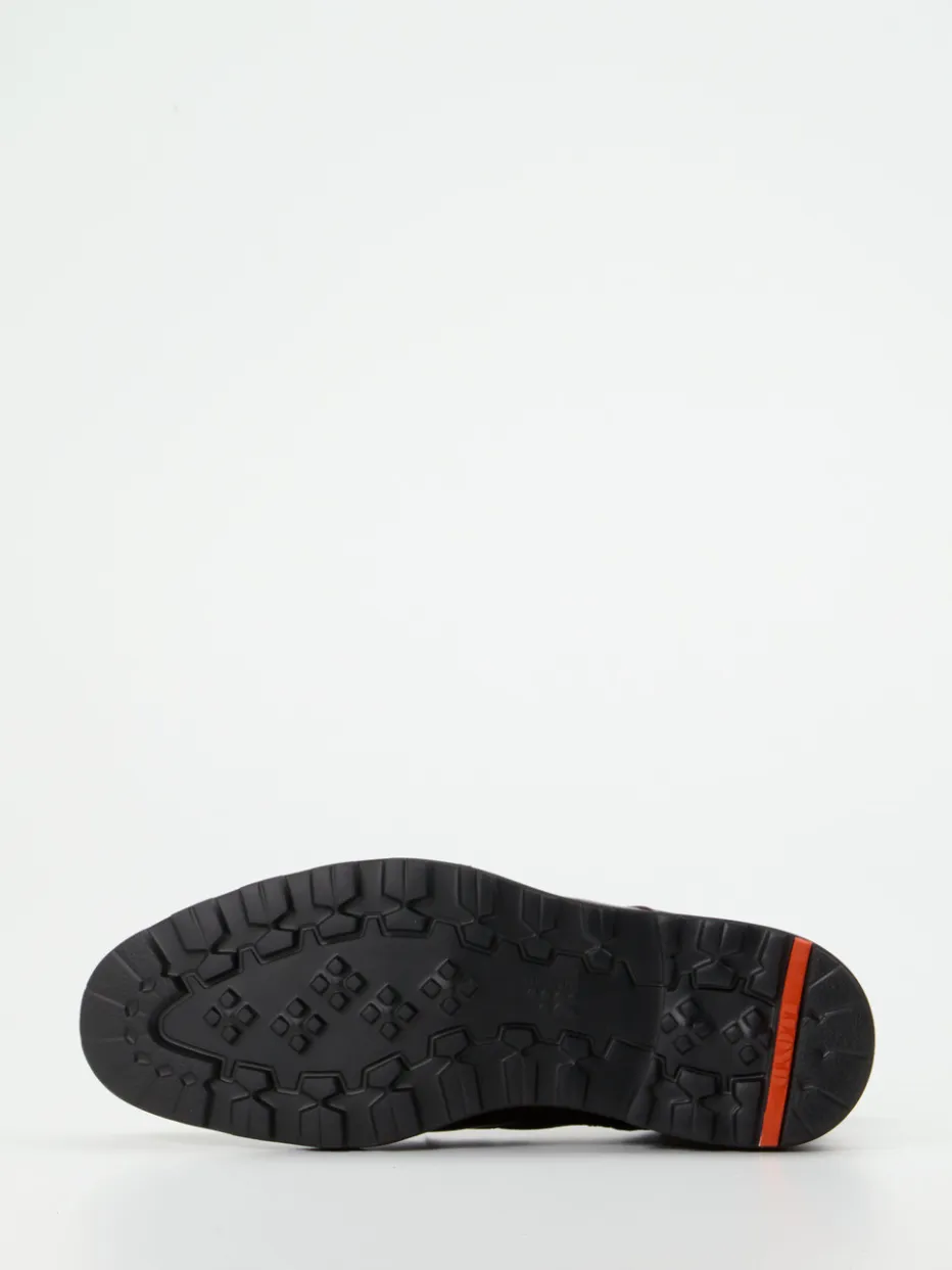 Ob im Berufsalltag oder bei Stadtspaziergängen – das dunkelbraune, leicht glänzende Glattleder trifft auf eine robuste Silhouette und einen funktionalen Mix aus Schnürung und Reißverschluss. Eine warme Wollfütterung, das gepolsterte Wechselfußbett sowie eine griffige Profilsohle sorgen für Tragekomfort bei kühleren Temperaturen. Das dezente Nahtbild und der tonige Look unterstreichen den cleanen Utility-Charakter. Ideal kombinierbar mit gedeckten Wintertönen und maskulinen Casual-Looks.