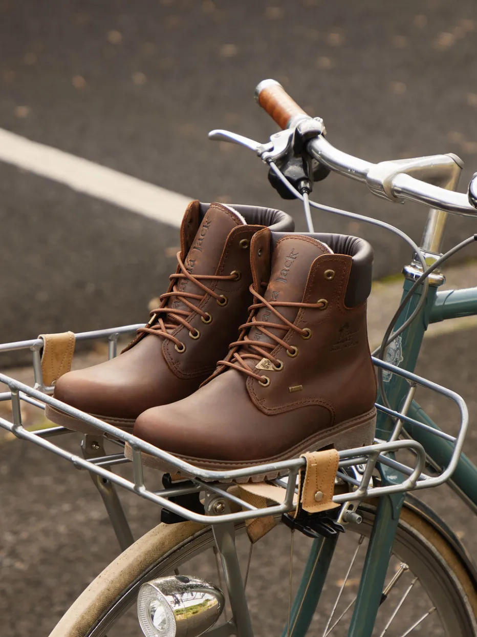 Robuster Begleiter für klare Herbsttage.Panama Jack präsentiert wetterfeste Schnürboots für anspruchsvolle Outdoor-Momente. Ob bei Stadtspaziergängen oder Touren durchs Gelände – das hochwertige Glattleder mit mattierter Oberfläche und Gore-Tex-Membran trotzt Wind und Wasser. Messingfarbene Ösen, der gepolsterte Schaft und eine tiefe Profilsohle betonen die funktional inspirierte Silhouette. Innen sorgt wärmendes Wollfutter für Komfort. In mittelbraun mit dunklen Nuancen gehalten, lassen sich die Boots unkompliziert zu Jeans und Outdoorjacke kombinieren. Langlebige Konstruktion trifft auf verlässlichen Wetterschutz – im typischen Panama Jack Stil.
