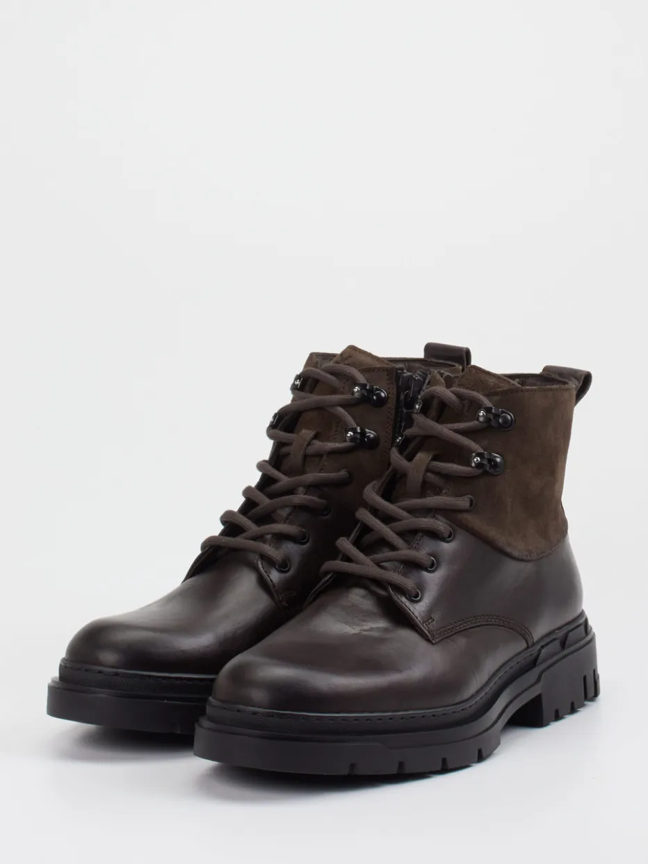 Stilsicher bei Herbstwetter.Die Herrenschuhmarke Lloyd zeigt mit diesen Utility-inspirierten Schnürboots, wie Alltagstauglichkeit und maskuline Ästhetik verschmelzen. Ideal für Freizeit und Outdoor-Ansprüche bieten diese dunkelbraunen Boots zuverlässigen Halt und wärmenden Komfort. Hochwertiges Kalbleder wird durch samtig angerauten Velours am Schaft akzentuiert. Der seitliche Reißverschluss ergänzt die derbe Schnürung funktional, während die tief profilierte Gummisohle Trittsicherheit verspricht. Das Lammfellfutter unterstreicht den Anspruch an Wärme und Behaglichkeit. Designmerkmale wie schwarze Metallösen und Zuglasche runden die Utility-Optik ab. Lloyd vereint stilvolle Robustheit mit durchdachtem Komfort für anspruchsvolle Herbsttage.