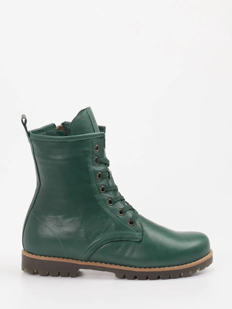 Stilvolle Stärke für urbane Schritte. Andrea Conti präsentiert diesen Damen-Schnürboot im klassischen Combat-Stil. Ideal für kühle Tage oder dynamische Stadtspaziergänge: Das Modell zeigt sich in glattem Kalbleder mit matter Oberfläche und wird durch bronzefarbene Metallösen sowie eine naturbraune Kontrastsohle akzentuiert. Die markante Silhouette mit hoher Schnürung, seitlichem Reißverschluss und Zuglasche verbindet Komfort mit modernem Streetwear-Charme. Die profilierte Gummisohle sorgt für zuverlässigen Grip, der Look harmoniert hervorragend mit Strickaccessoires und naturfarbenen Outdoorjacken. Farblich überzeugt das satte Tannengrün – ein angesagtes Statement in der Wintersaison. Authentisch bequeme Passform in charakteristischer Andrea-Conti-Manier.