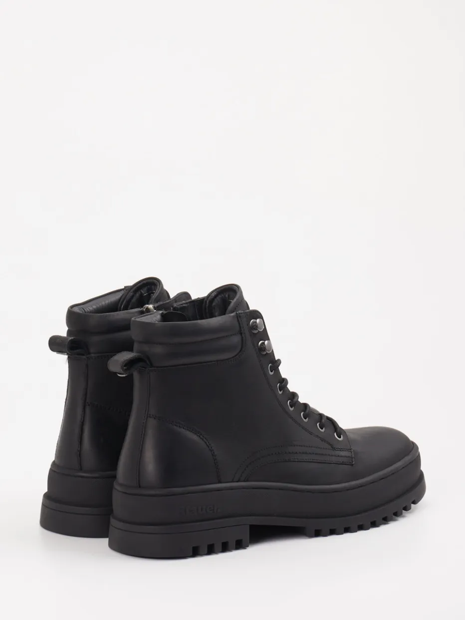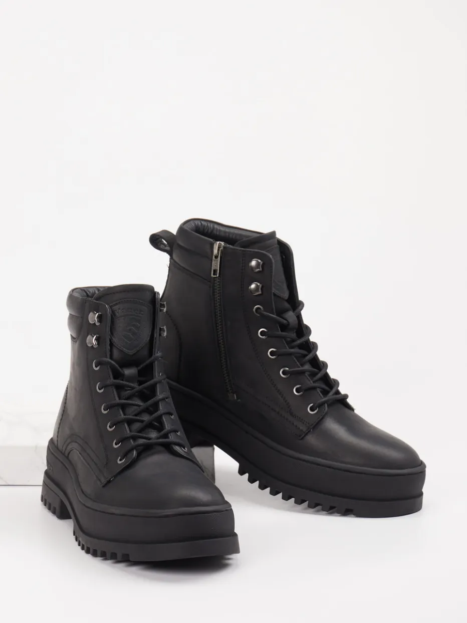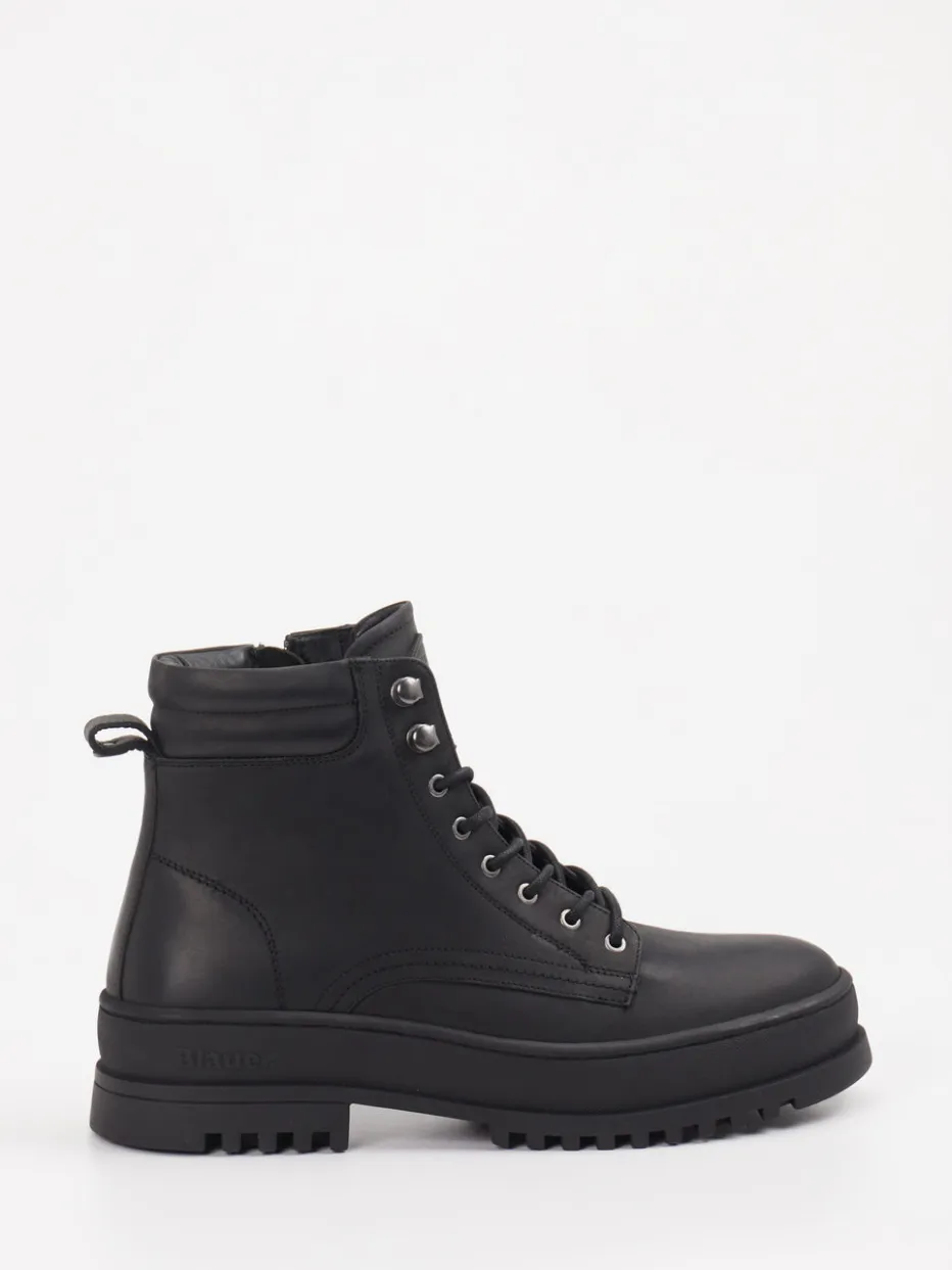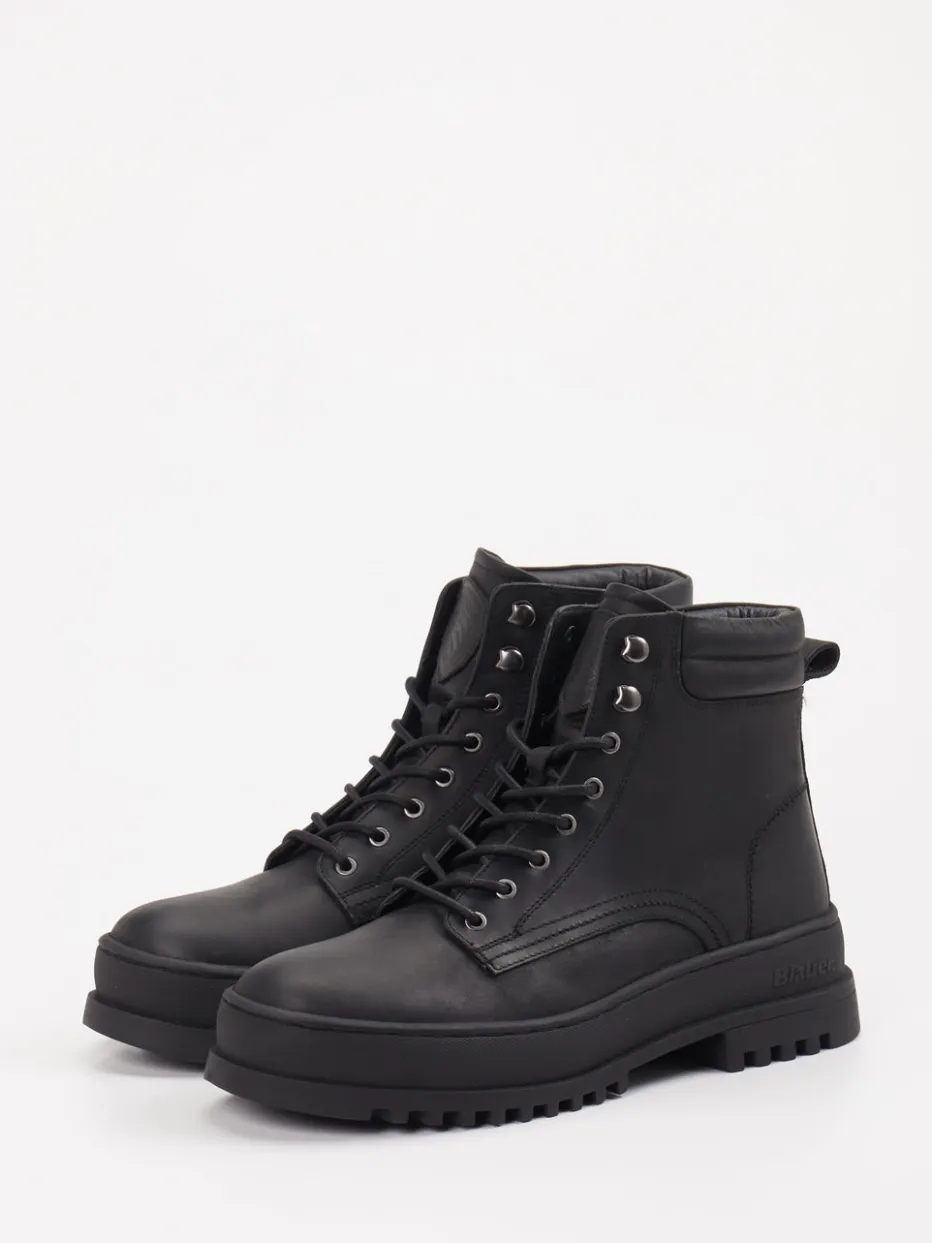 Diese schwarzen Combat Boots von Blauer vereinen robusten Kalbleder-Look mit funktionalem Komfort und urbanem Stil.