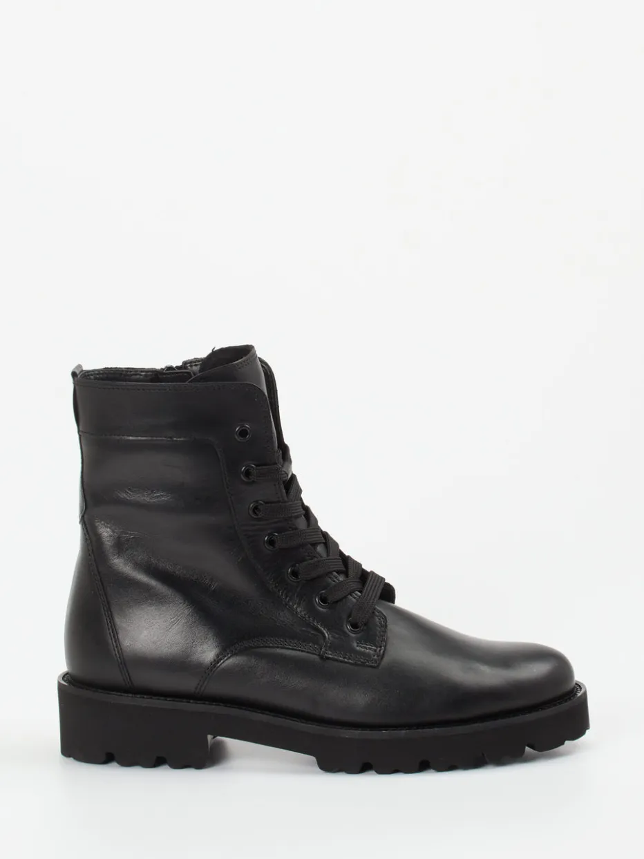 Stilvoll durch Wind und Wetter.Die Marke Gabor präsentiert mit dieser Stiefelette eine schnörkellose Schnürboots-Variante für Damen. Ideal für die Übergangszeit bietet das schwarze Kalbleder mit glatter, glänzender Oberfläche und Ton-in-Ton-Nähten ein stilvolles Auftreten im urbanen Alltag. Die klassische, robust gehaltene Silhouette mit profilierter Gummisohle, seitlichem Reißverschluss und Siebenloch-Schnürung garantiert hohen Tragekomfort und Bodenhaftung. Dezente Strassakzente am Schaftabschluss setzen ein modisches Statement, während der All-over-Look minimalistische Ansprüche erfüllt. Mit ihrem microfasergefütterten Inneren und herausnehmbarem Fußbett eignet sich der Schuh auch für kühlere Outdoor-Momente. Langfristige Bequemlichkeit trifft auf anspruchsvolle Alltagsästhetik in typisch Gabor-Qualität.