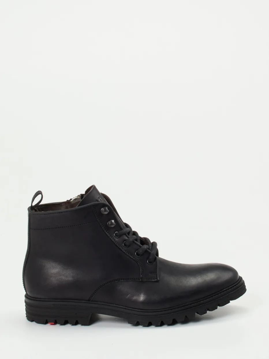 Minimalistischer Alltagskomfort mit Grip.Die Marke Lloyd präsentiert mit diesen Herren-Schnürboots ein rustikales Modell, das den Anforderungen der kalten Jahreszeit souverän begegnet. Ideal für herbstliche Spaziergänge durch urbane Parks oder den täglichen Weg ins Büro: Das schwarze Kalbleder zeigt sich in glatter, matter Oberfläche mit tonalen Nähten. Der knöchelhohe Schaft mit gerundeter Front wird durch eine Metallösen-Schnürung ergänzt, der seitliche Reißverschluss erleichtert das Anziehen. Eine robuste Gummiprofilsohle mit rotem Akzentstreifen bietet zuverlässigen Halt. Die Optik ist vom Workwear-Stil inspiriert und passt zu einem funktional-lässigen Freizeitlook. Ein urbaner Klassiker mit klarer Formsprache – gefertigt mit Lloyd-typischer Qualität.