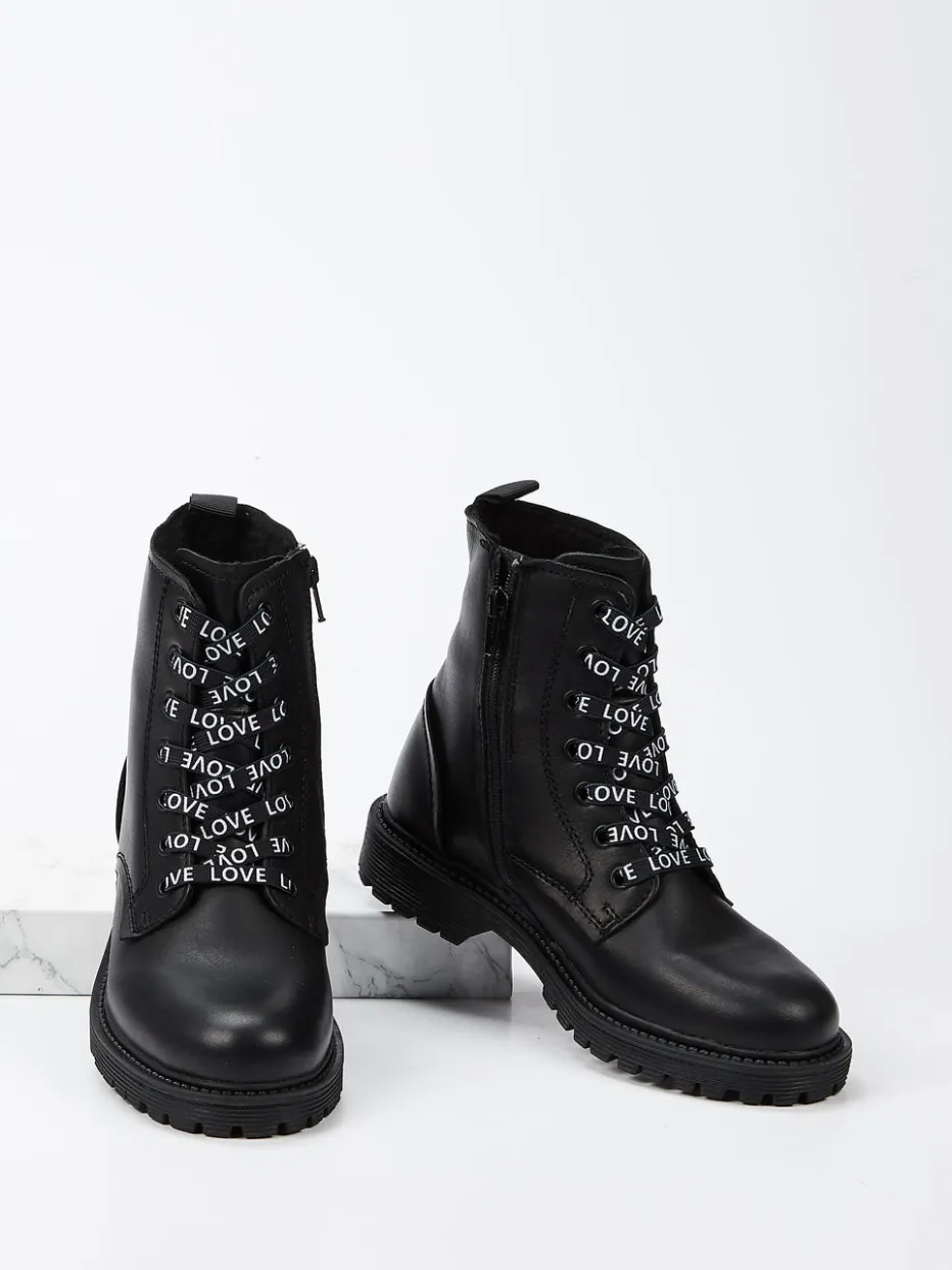 Mit robustem Kalbleder und markanter Schnürung mit LOVE-Schriftzug vereinen diese Kinderboots Funktionalität und Streetstyle in perfekter Balance.