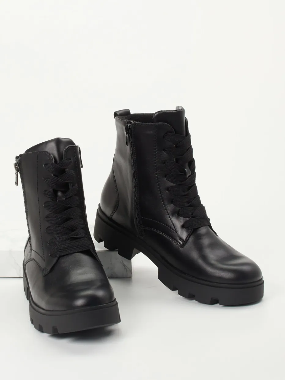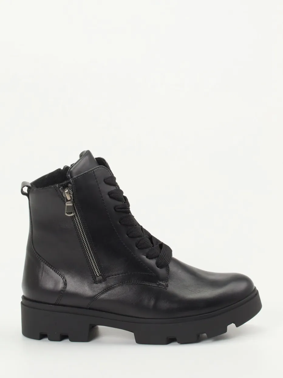 Stilsicher durch kühle Tage.Waldläufer zeigt mit diesen Damen-Schnürboots eine gelungene Verbindung aus Funktionalität und urbanem Stil. Ob Herbstspaziergang oder Alltag in der Stadt – der schwarze Kalbleder-Schuh mit matter Oberfläche bietet zuverlässige Trittsicherheit dank profilierter PU-Sohle. Die breite Schnürung und zwei seitliche Reißverschlüsse sorgen für bequemes An- und Ausziehen. Innen wärmt ein weiches Textilfutter, während das gepolsterte, herausnehmbare Fußbett für hohen Tragekomfort sorgt. Der chunky Schnitt greift aktuelle Utility-Trends auf und passt hervorragend zu Thermo-Leggings und Lederjacke. Waldläufers Komfortweite K bietet spürbare Entlastung bei maximalem Laufgefühl.
