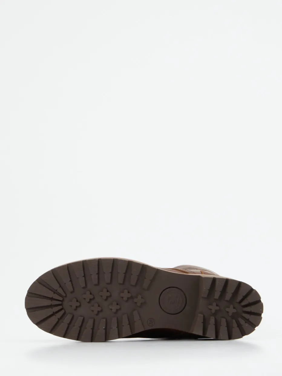 Für winterliche Outdoor-Momente.Die Marke Panama Jack präsentiert klassische Schnürboots für Damen, gefertigt aus geöltem Lammleder. Ideal für kalte Jahreszeiten: Das matte, mittelbraune Obermaterial verleiht den Boots eine authentische Workwear-Note, während das flauschige Innenfutter aus Lammfell wohlige Wärme garantiert. Seitlicher Reißverschluss und Schnürung sorgen für praktische Handhabung und individuelle Passform. Die stark profilierte Gummisohle sorgt für Trittsicherheit bei winterlichen Bedingungen. Ton-in-Ton-Nähte und ein geprägtes Logo auf der Lasche setzen dezente Designakzente. Kombiniert mit einer Outdoorjacke entsteht ein funktional-stilvoller Look. Markentypisch warm, wetterfest und langlebig verarbeitet.