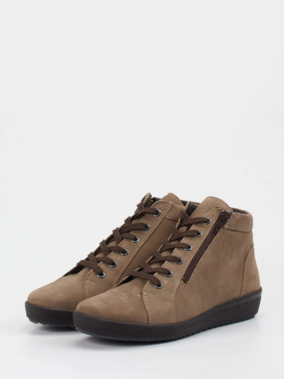 Hochwertiges Nubukleder, ein weiches Wollfutter und ein seitlicher Reißverschluss vereinen sich zu einem funktionalen Komfortschuh für kalte Tage.
