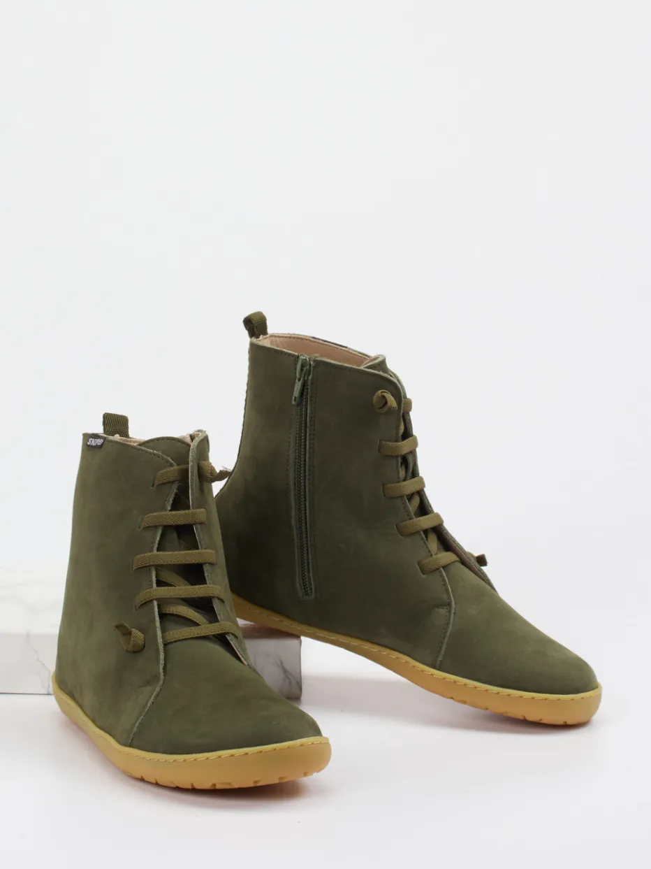 Ideal für entspannte Herbsttage in der Stadt: Das samtig angeschliffene Nubukleder in Olivgrün trifft auf ein weiches Microfaserfutter und eine flexible, recycelbare Gummisohle. Die schmale, konische Form unterstreicht den reduzierten Charakter, während der seitliche Reißverschluss und eine dezente Zuglasche praktischen Komfort bieten. Ton-in-Ton-Nähte und ein Logo-Label setzen zurückhaltende Akzente. Ein Modell im Spirit von Quiet Luxury und Natural Tones – ideal für Casual-Outfits mit Wollmantel oder Umhängetasche.