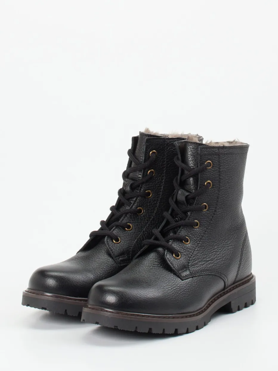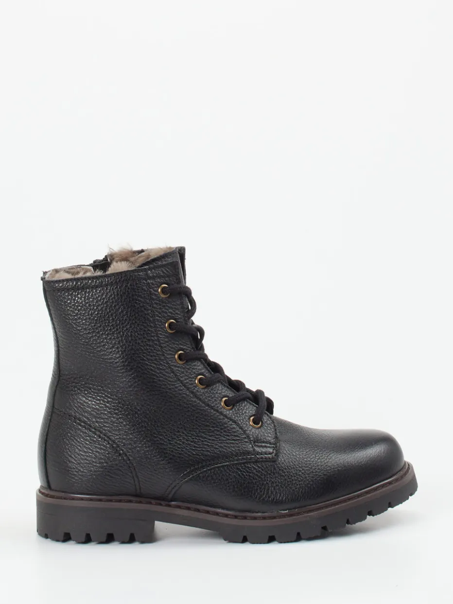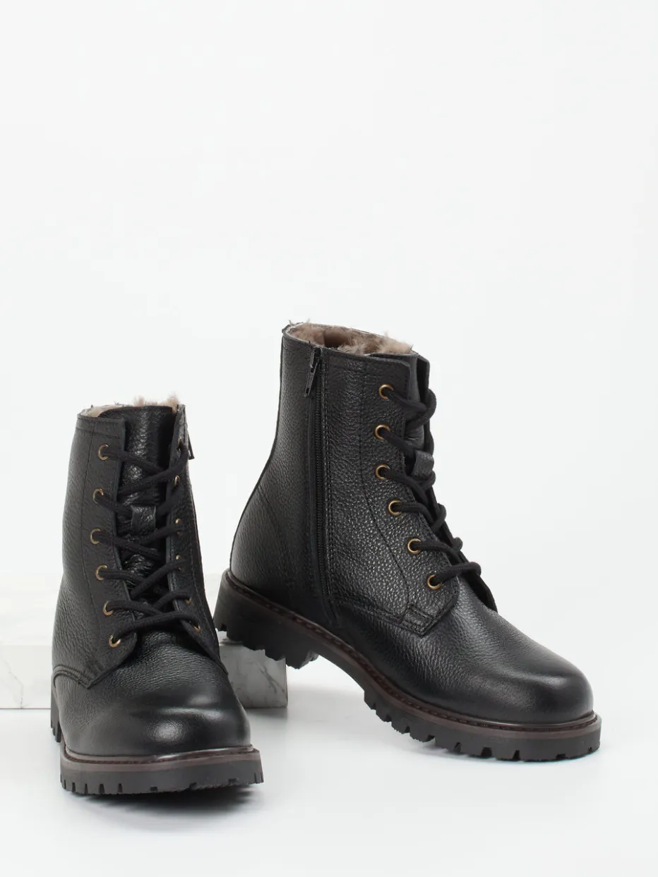 Diese hochgeschlossenen Damenboots vereinen robustes Nubukleder mit warmem Innenfutter für komfortable Wintertage. Die markante Profilsohle verleiht dem Design einen modernen Utility-Charakter.