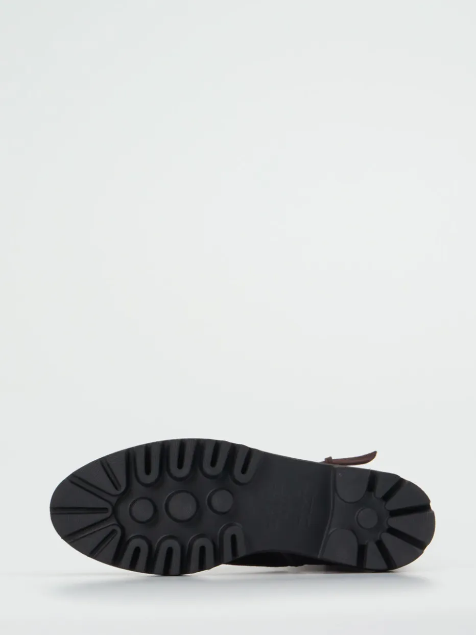 Stilvoller Funktionsträger für urbane Herbsttage.Truman’s interpretiert klassisch inspirierte Damen-Stiefeletten neu. Das Modell vereint hochwertiges Veloursleder mit matter Oberfläche in tiefem Dunkelbraun und einer markanten Leichtzell-Profilsohle. Die knöchelhohe Form wirkt durch Schnürung, seitlichen Reißverschluss und goldglänzende Schnalle modern und zugleich zeitlos. Der betonte Rahmen in Holzoptik und die dezente Zuglasche unterstreichen die detailverliebte Ausarbeitung. Optimal für Freizeit und Outdoor-Einsätze in der kühleren Jahreszeit – im Trendstil der „Quiet Luxury“-Ära. Harmonisch zu Oversized-Mänteln und edlem Strick kombinierbar. Komfortabler Chic mit charaktervollem Design – Handmade by Truman’s.