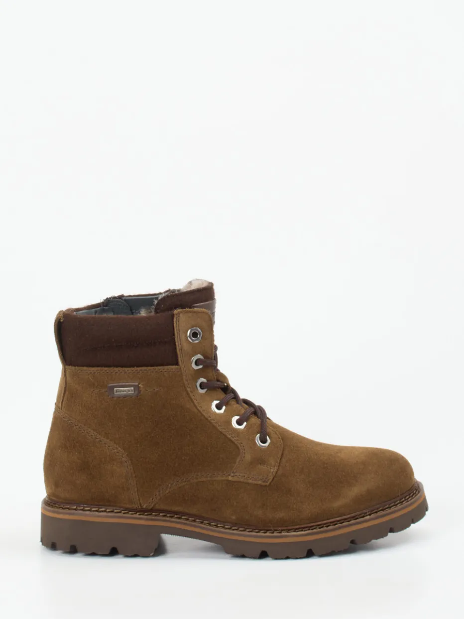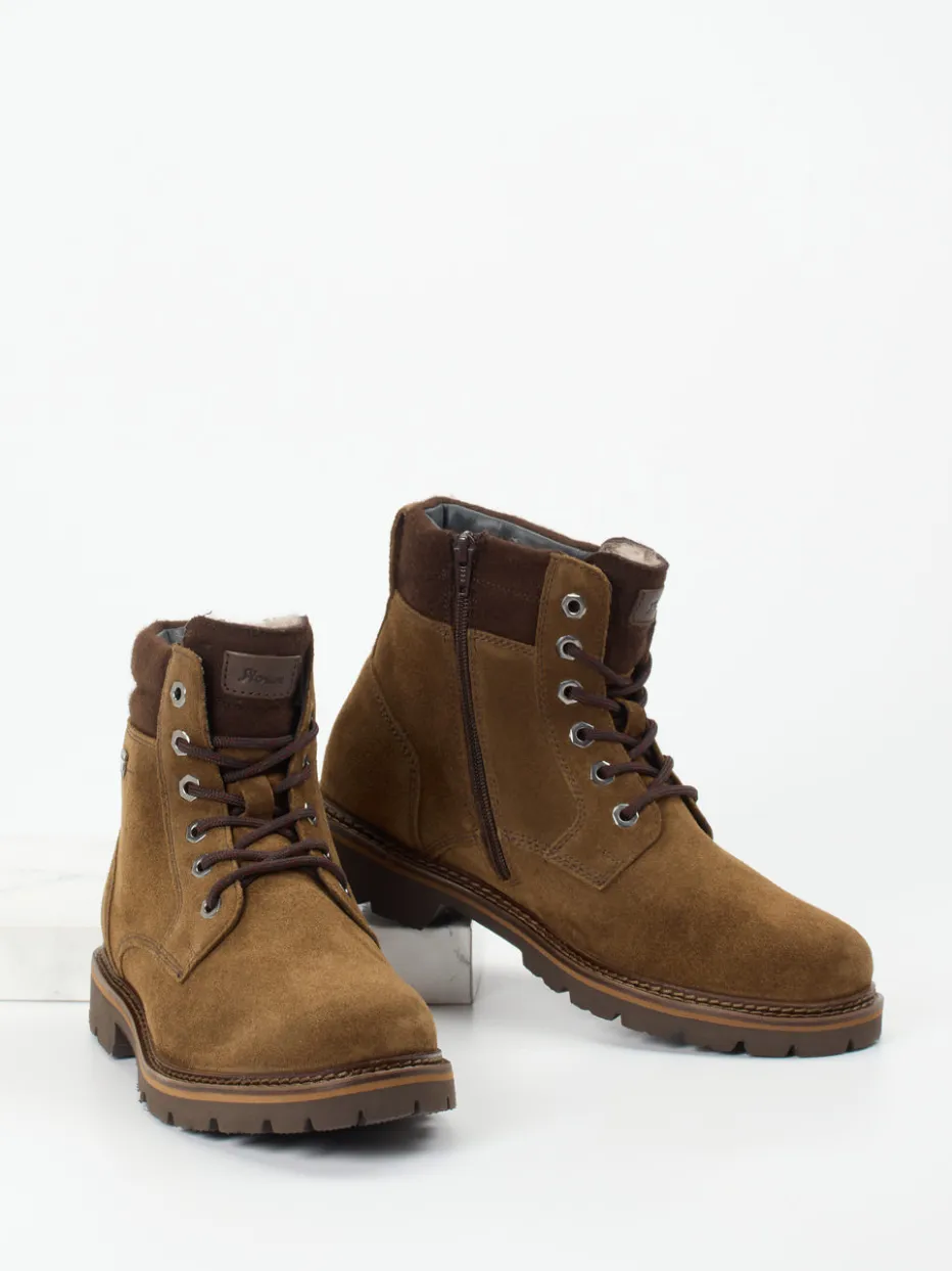 Ideal für kalte und nasse Tage schützt das Veloursleder durch seine samtige Struktur und die integrierte SiouxTEX-Membran zuverlässig vor Wind und Feuchtigkeit. Innen sorgt ein flauschiges Lammfellfutter für spürbare Wärme. Die mittelbraune Farbe wird durch silberfarbene Metallösen und tonale Nähte stilvoll ergänzt. Der seitliche Zipper erleichtert das Anziehen, die profilierte Gummisohle bietet festen Grip auf rutschigen Untergründen. Die klassische Silhouette mit gepolstertem Schaft passt ideal zum Minimalismus-Trend und lässt sich vielseitig zu Naturtönen kombinieren.