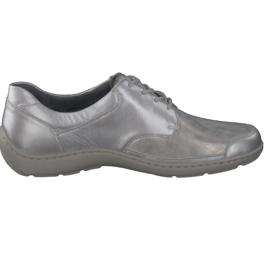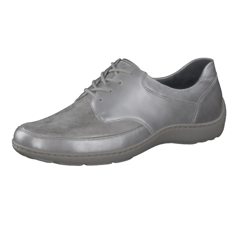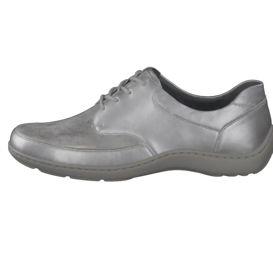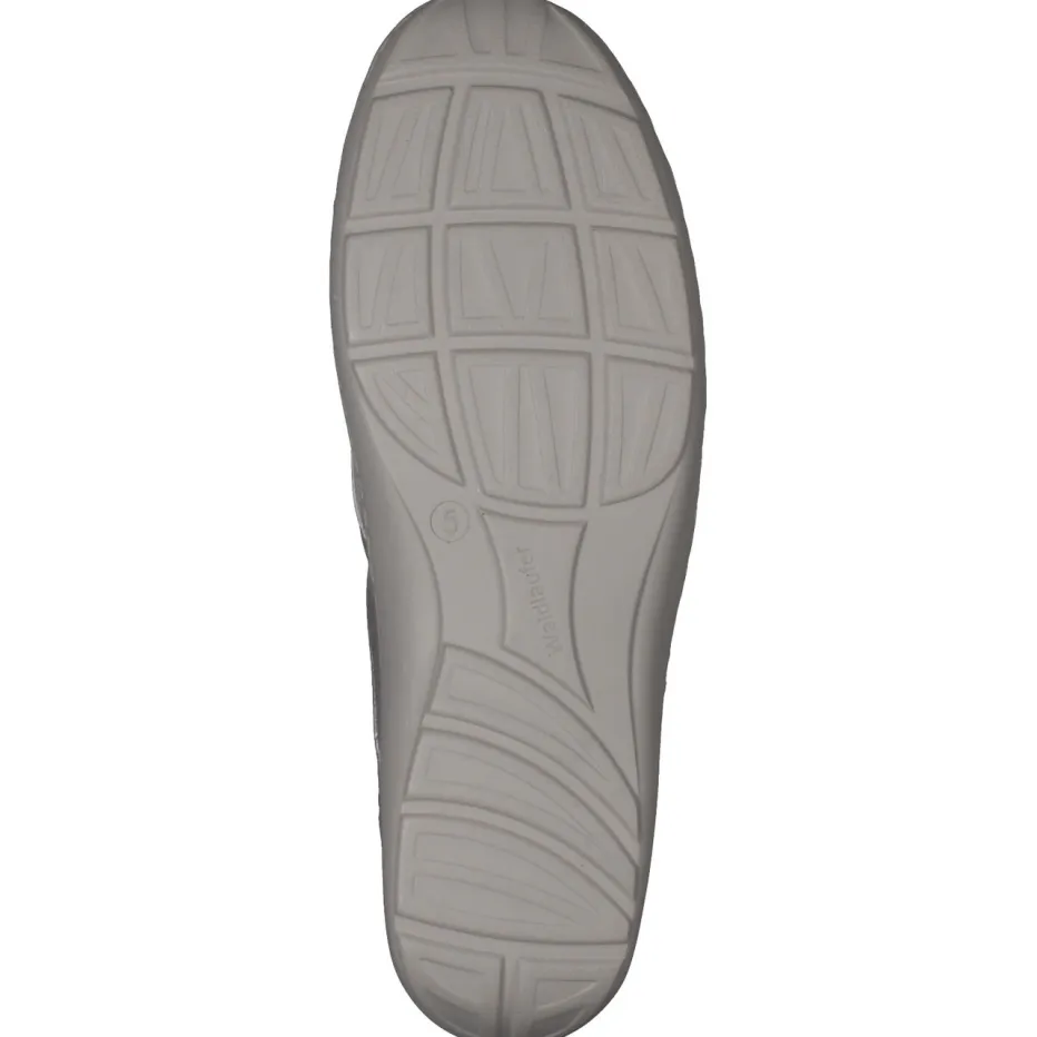 Silberner Komfort mit Metallic-Finish.Waldläufer präsentiert einen klassischen Damen-Schnürschuh mit moderner Note. Für Tage mit viel Bewegung bietet dieser silberfarbene Halbschuh dank ergonomischer PU-Sohle spürbare Entlastung. Das Obermaterial aus besonders weichem Metallicleder kombiniert glatte und samtige Partien mit einem edlen Glanz-Effekt. Die klassisch-runde Form, Ton-in-Ton-Nähte und eine stabile Fersenkappe betonen das dezente Design. Eine integrierte Luftpolstersohle sowie das herausnehmbare Fußbett bieten zusätzlichen Komfort und erlauben individuelle Einlagen. Durch seinen minimalistischen Look fügt er sich nahtlos in legere Stadtoutfits oder entspannte Freizeitgarderoben. Ein verlässlicher Wohlfühlschuh mit elegantem Trendakzent – typisch Waldläufer.